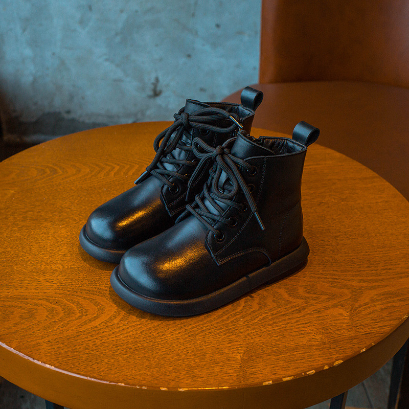 어린이 가죽 부츠 2024 가을 및 겨울 새 소녀 첼시 부츠 캐주얼 학생 마틴 부츠 소년 영국 스타일 어린이 신발스토어 가기