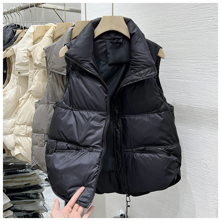 여성용 다운 코튼 조끼 2025 가을, 겨울 새로운 스타일 루즈하고 다재다능한 스탠드 업 칼라 조끼 여성용 짧은 조끼 코트 코튼 조끼스토어 가기