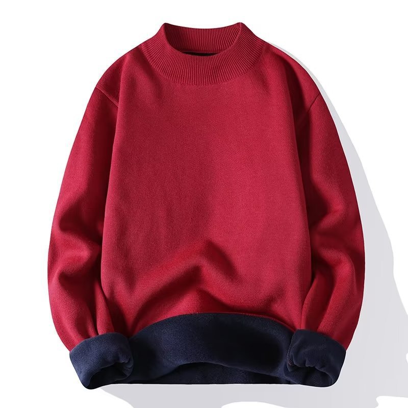 가을과 겨울 원피스 캐시미어 스웨터 남성 솔리드 컬러 세미 하이 칼라 라인 유럽 및 미국 캐주얼 풀오버 스웨터 재킷 청소년 남성