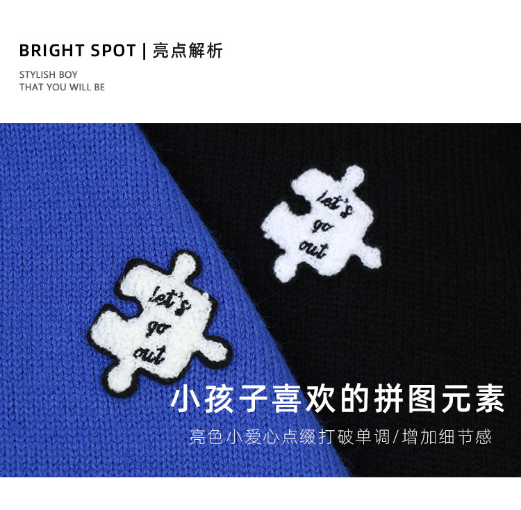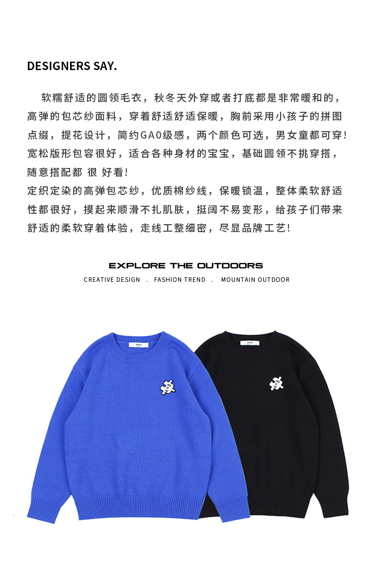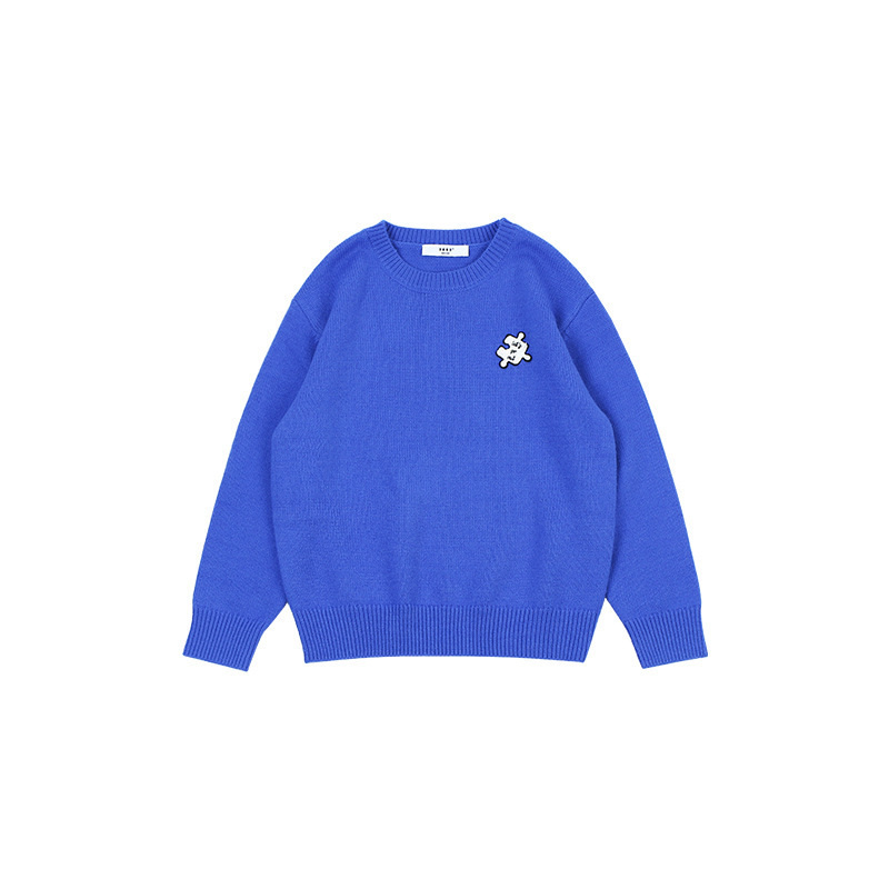 DK 아동복 가을 겨울 재미있는 자수 스웨터 어린이 남아 여아 중대형 아동용 세련된 캐주얼 니트 스웨터