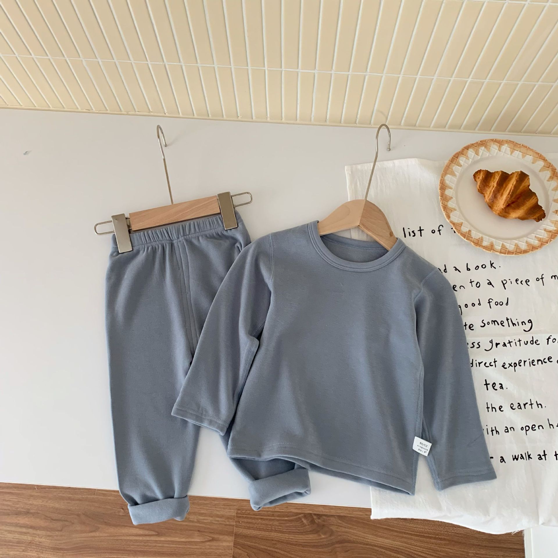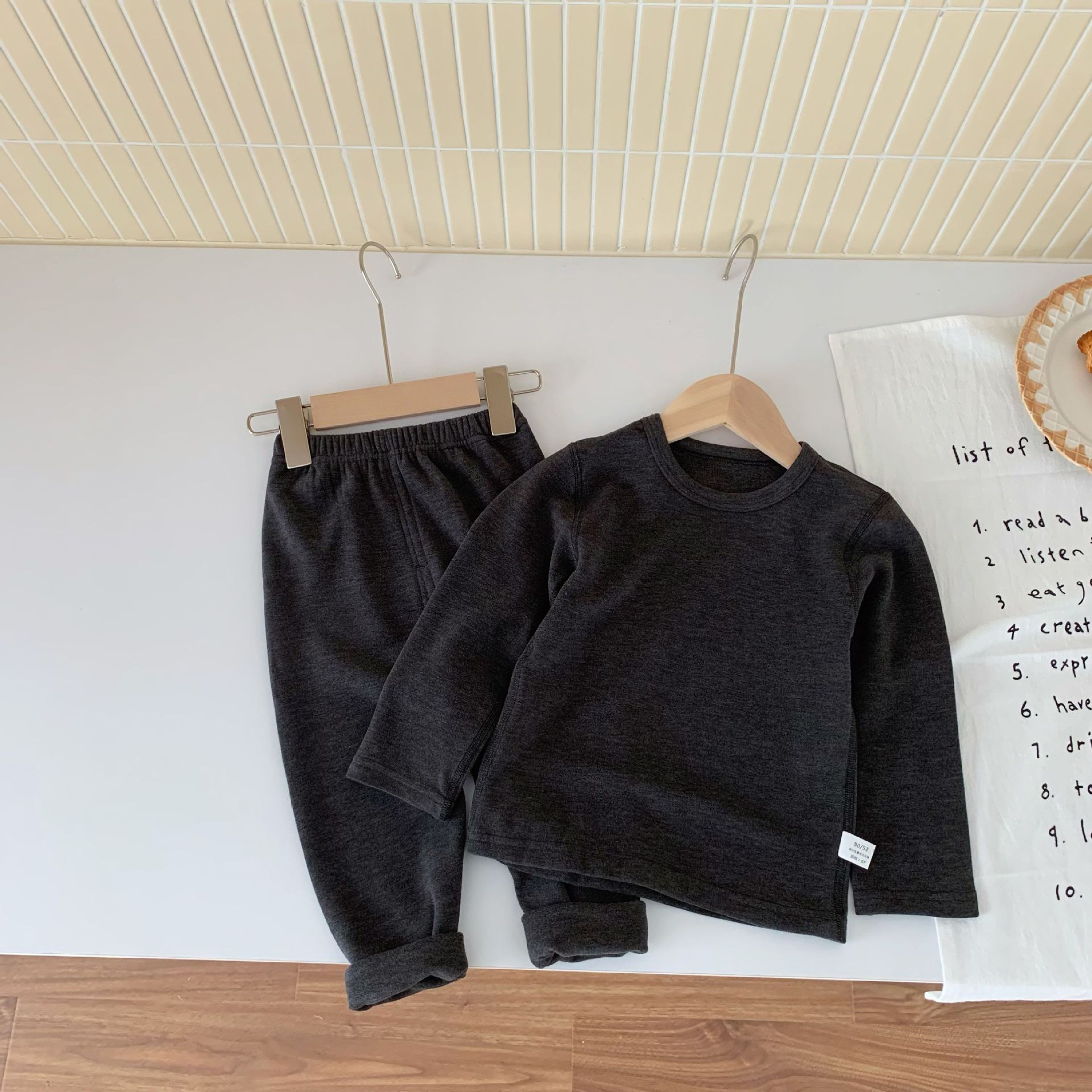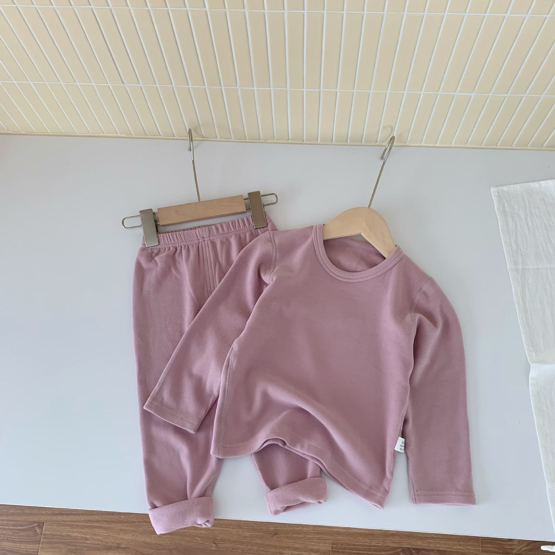 양면 독일 벨벳 어린이 열 속옷 세트 남녀 뜨거운 겨울 옷 300g 패딩 안쪽 아기의 가을 옷과 바지스토어 가기