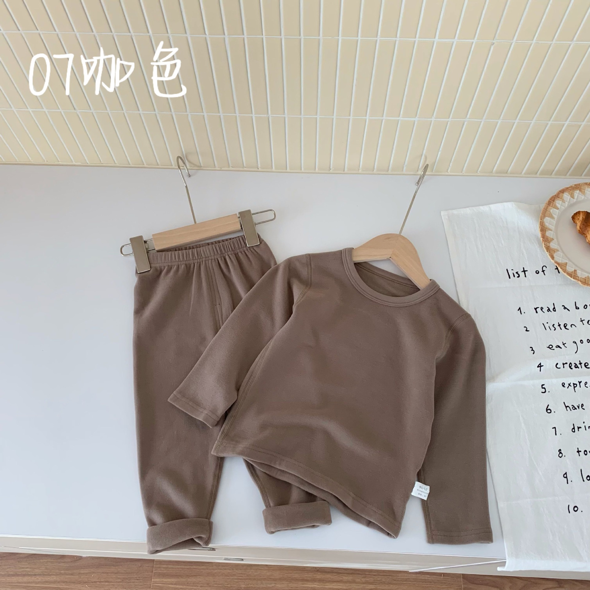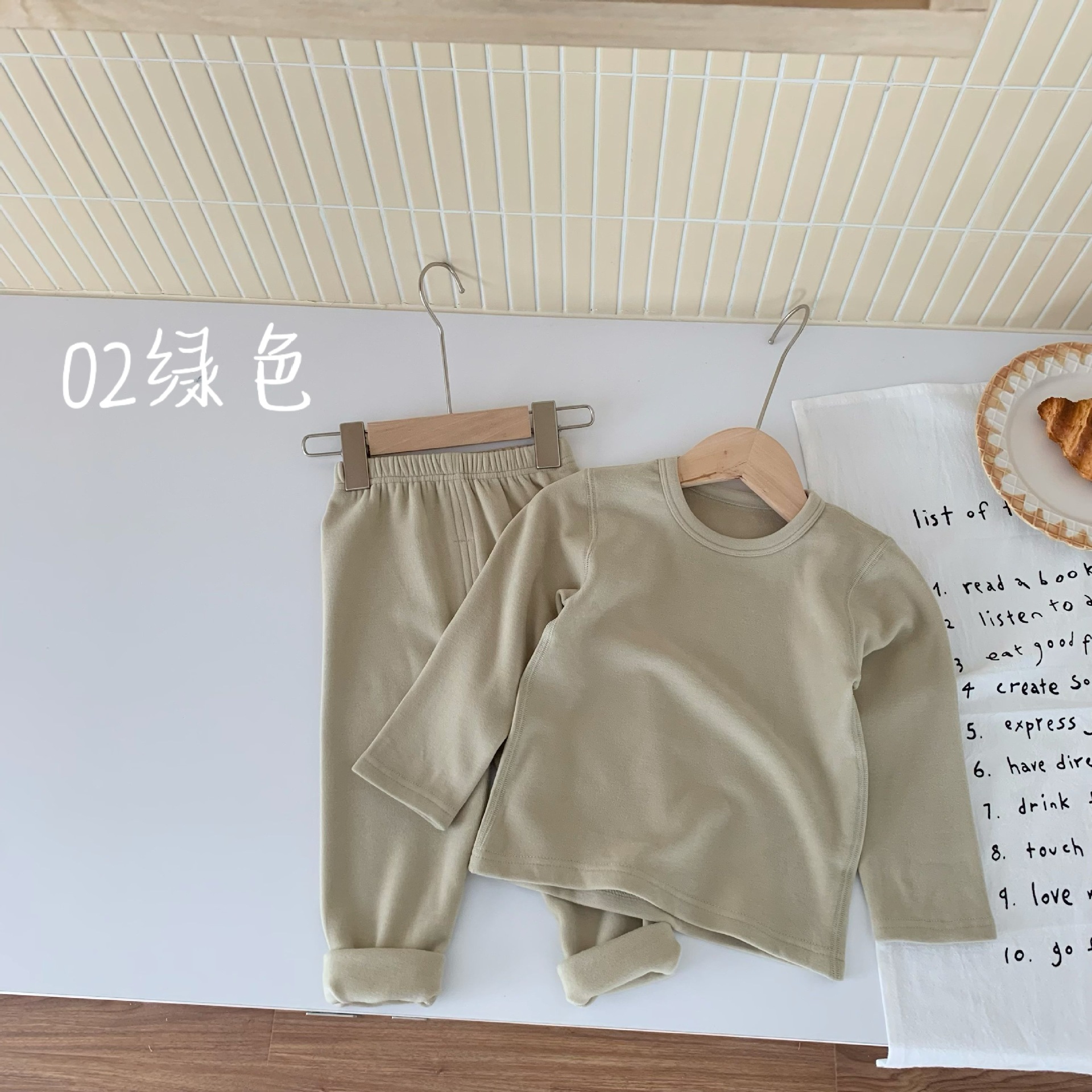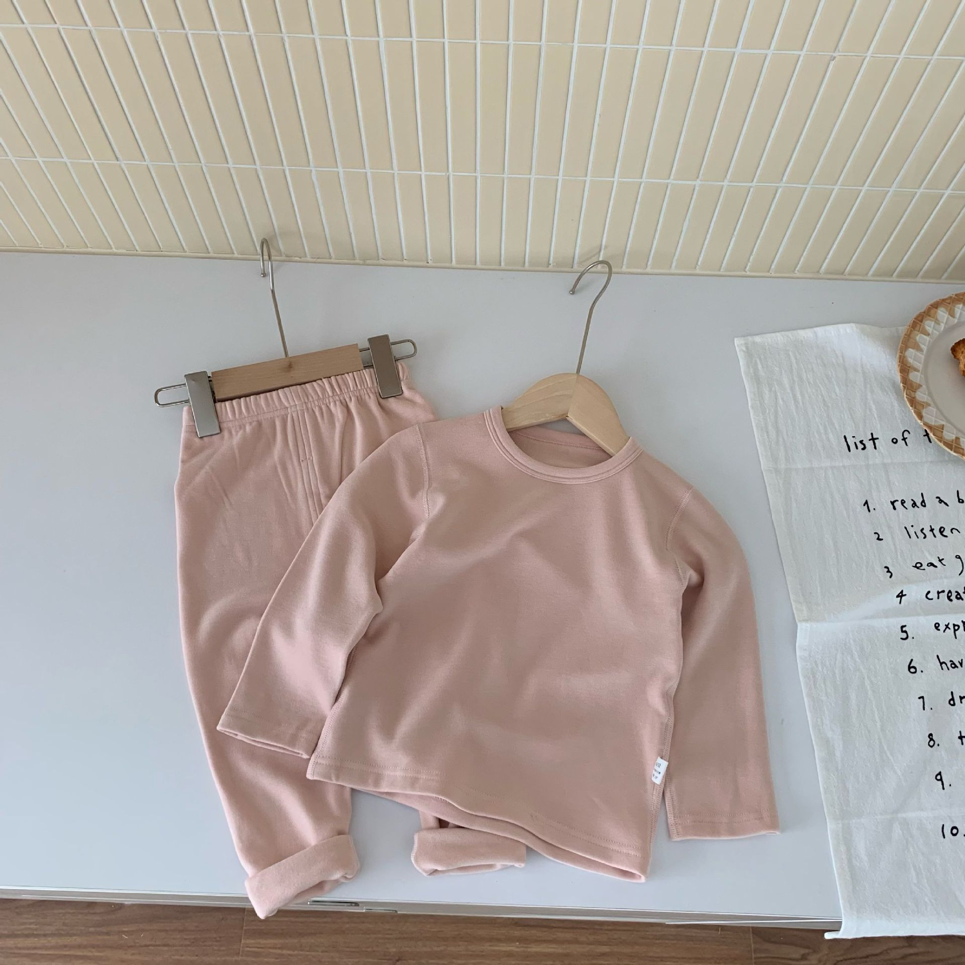 양면 독일 벨벳 어린이 열 속옷 세트 남녀 뜨거운 겨울 옷 300g 패딩 안쪽 아기의 가을 옷과 바지스토어 가기