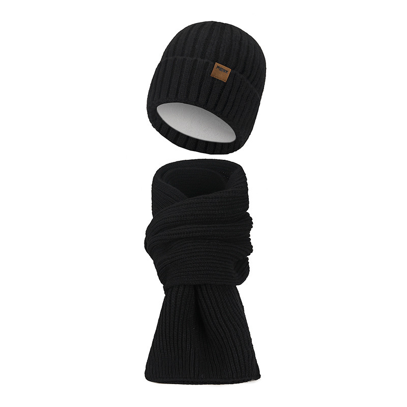FEWK 겨울 연장 스카프 모자 남성과 여성을위한 투피스 세트 냉장 따뜻한 스카프 기모 양모 니트 모자 국경스토어 가기