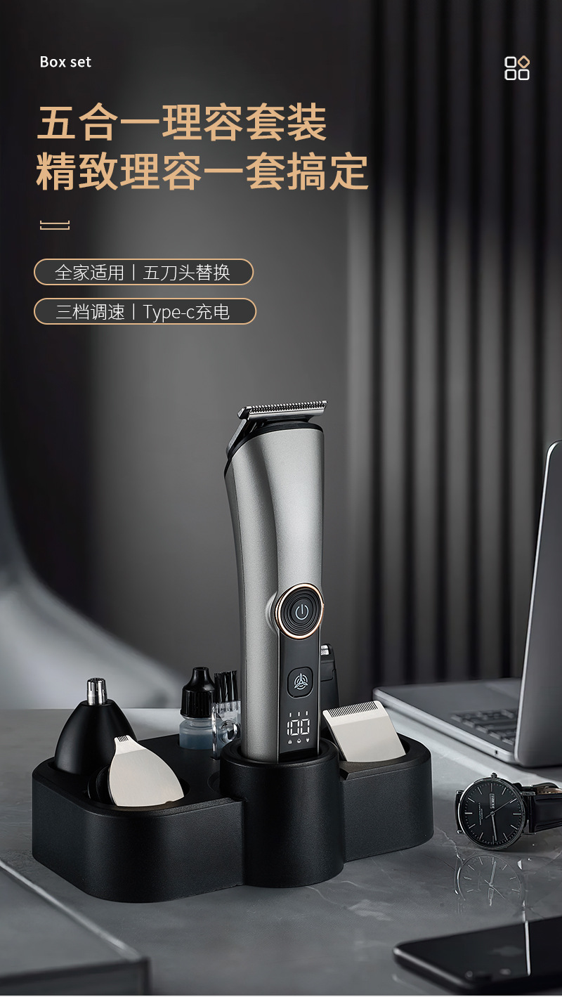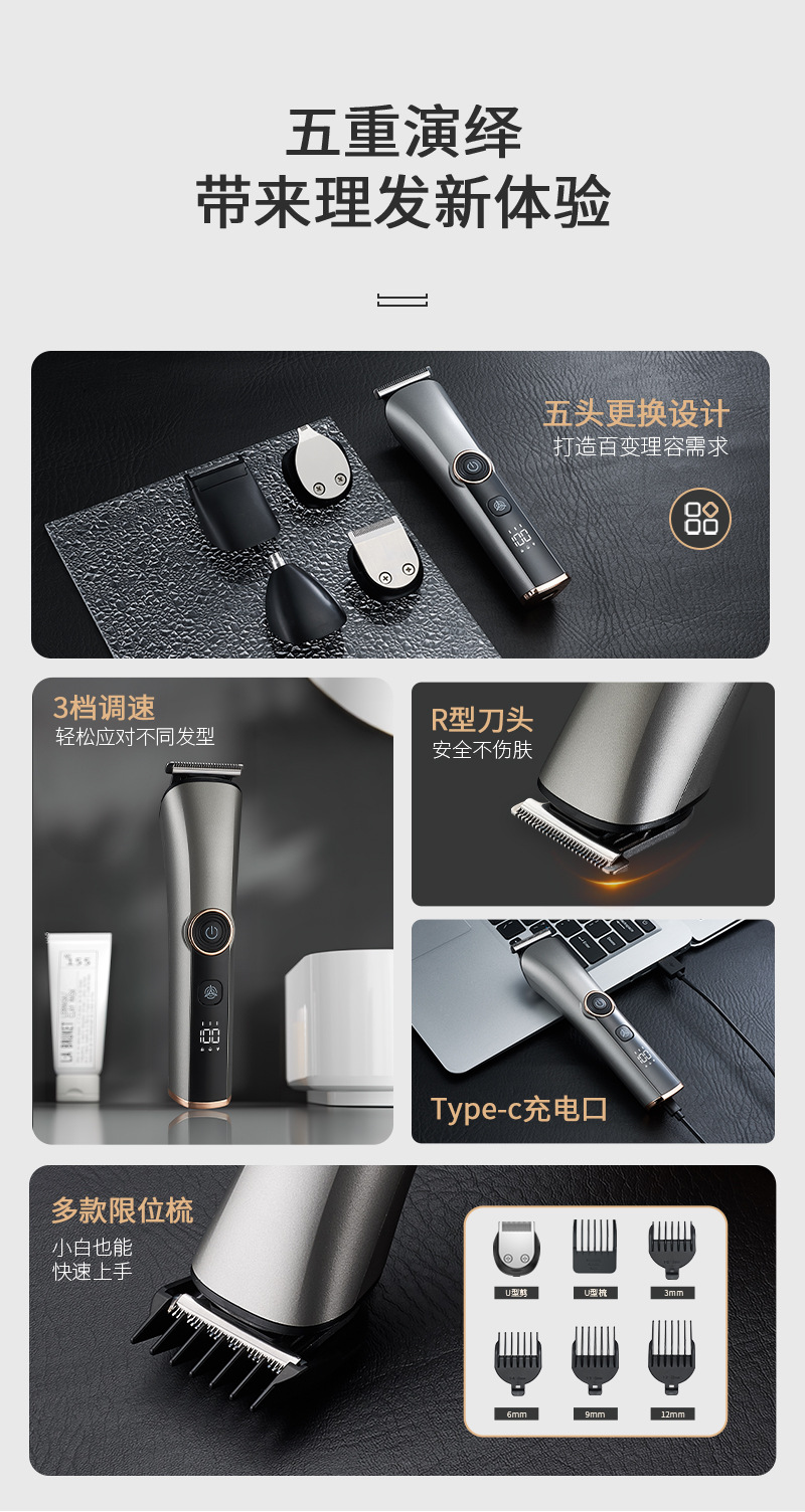 국경 간 새로운 5 대 1 헤어 클리퍼 전기 디지털 미용실 오일 헤드 가위 대머리 전기 클리퍼 가정용 전기 클리퍼