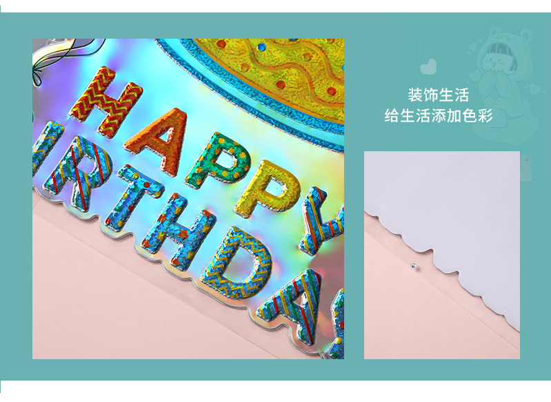 레이저 다채로운 생일 물집 거품 스티커 한국 손 계정 레이저 스티커 접착 거품 보상 스티커 도매스토어 가기