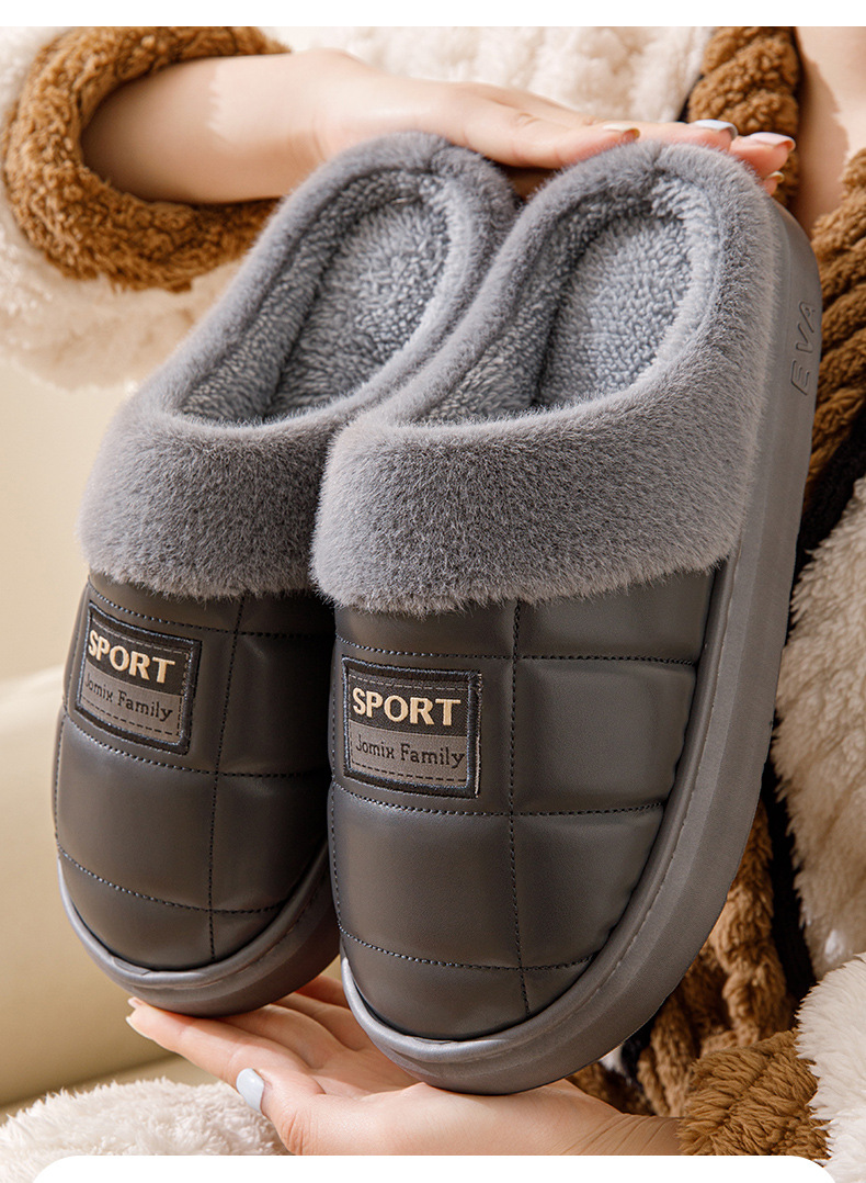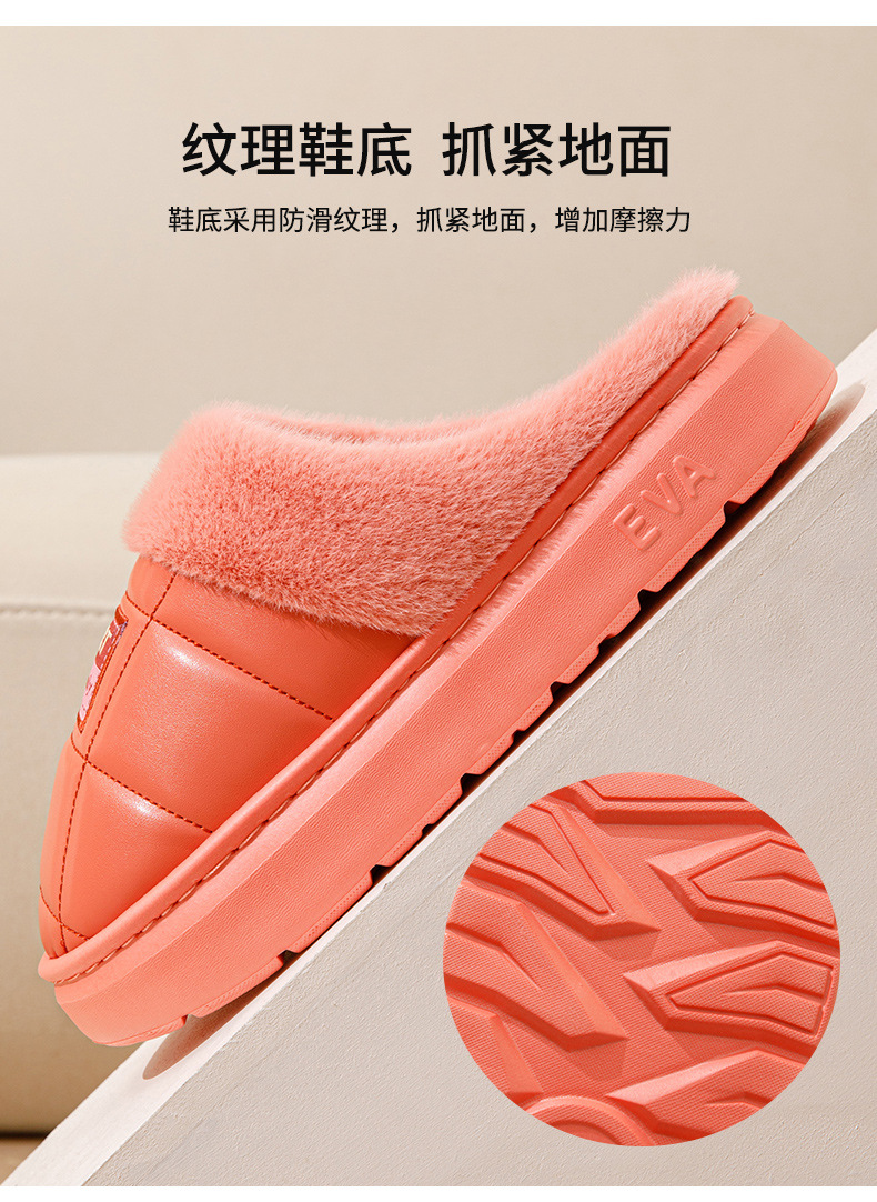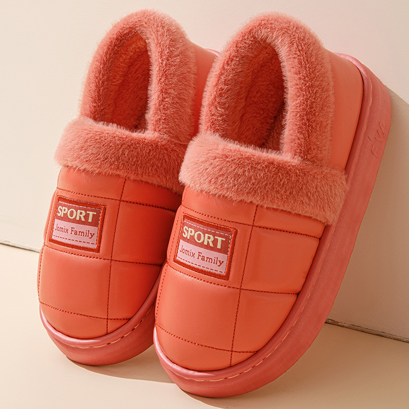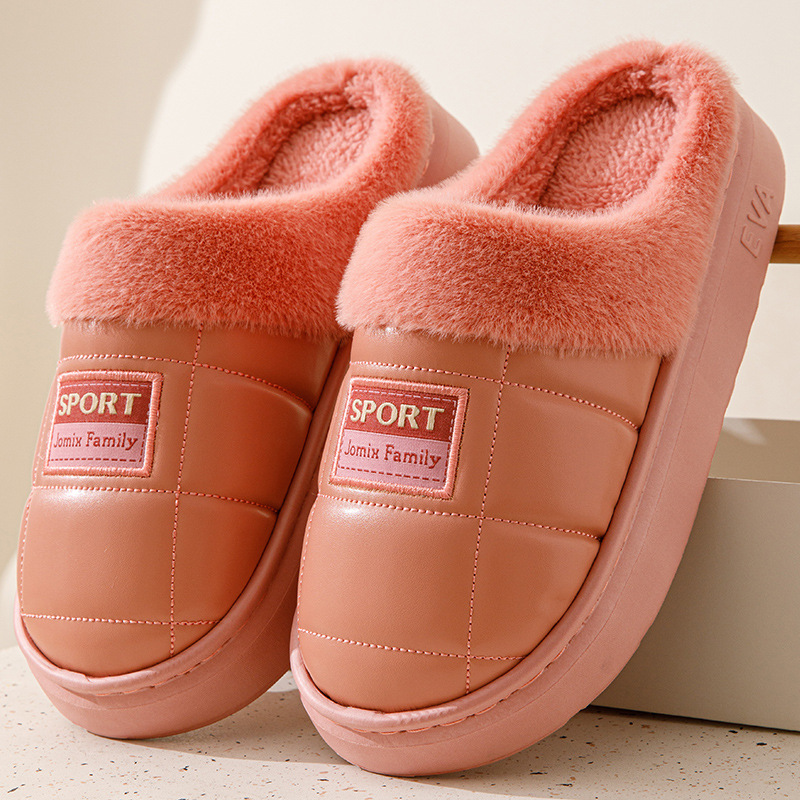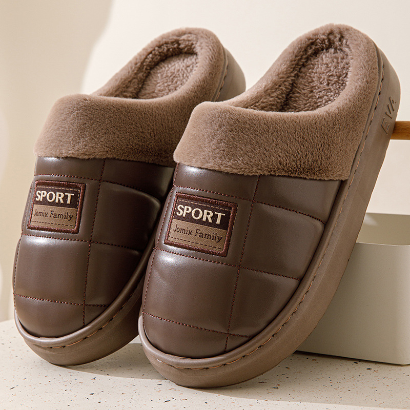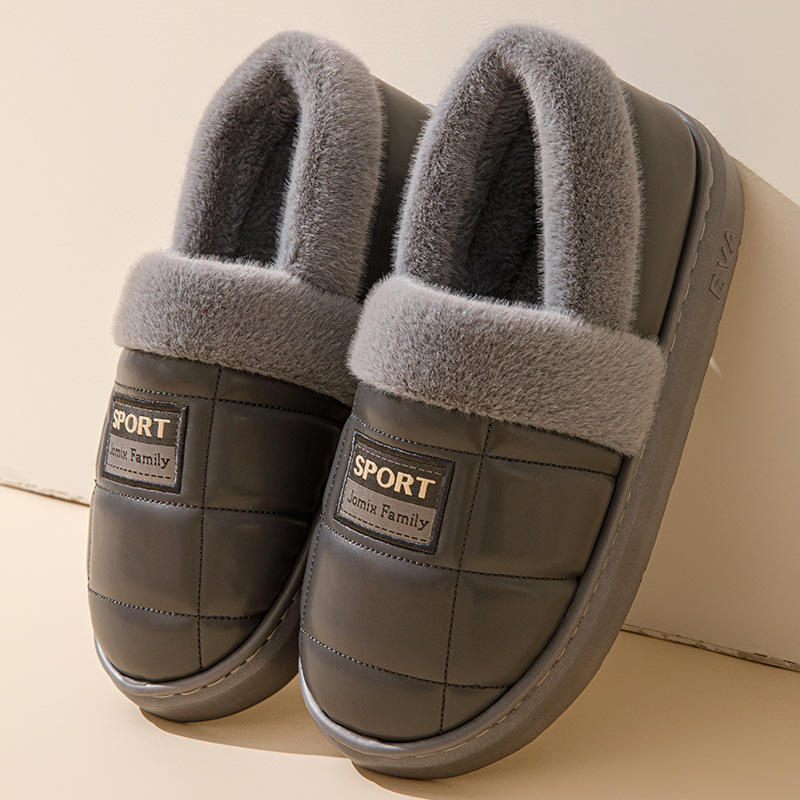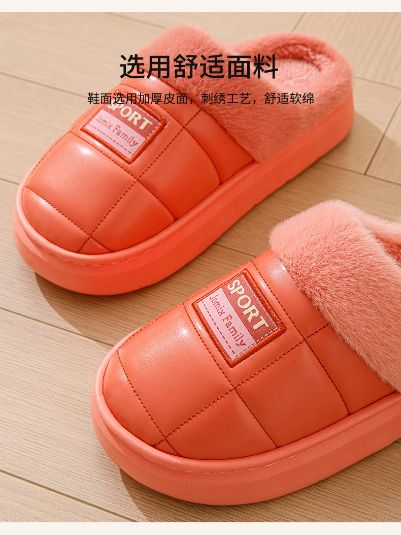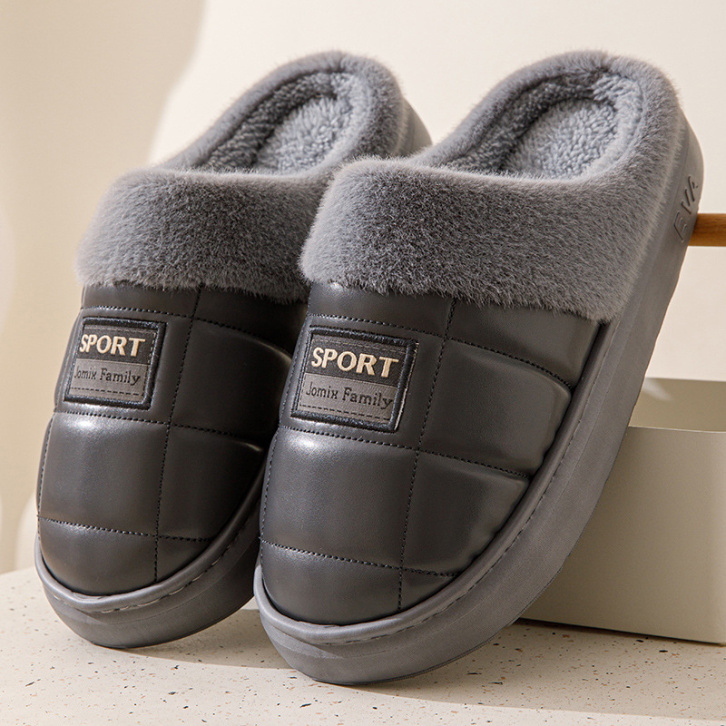 Pu 가죽 면화 슬리퍼 두껍게 면화 슬리퍼 남성 애호가 방수 홈 두꺼운 바닥 미끄럼 방지 따뜻한 기모 가을과 겨울