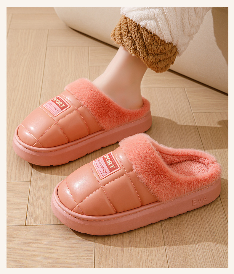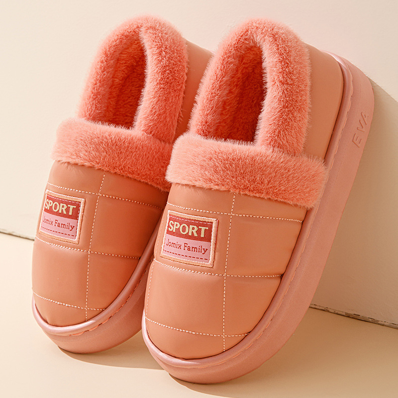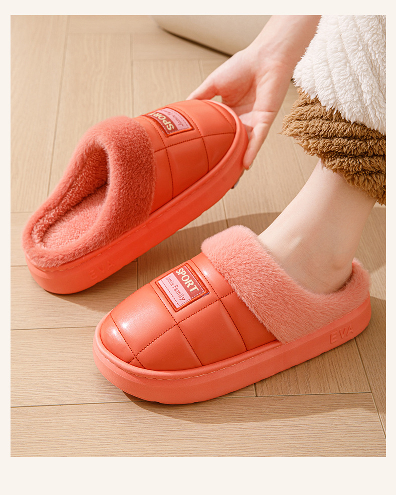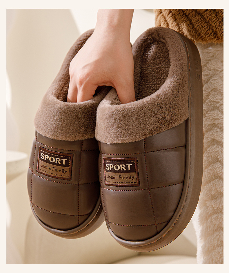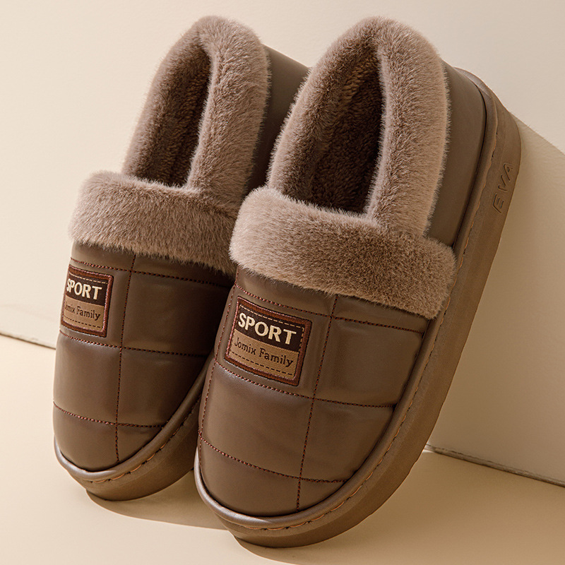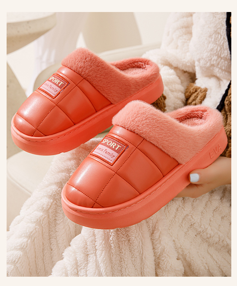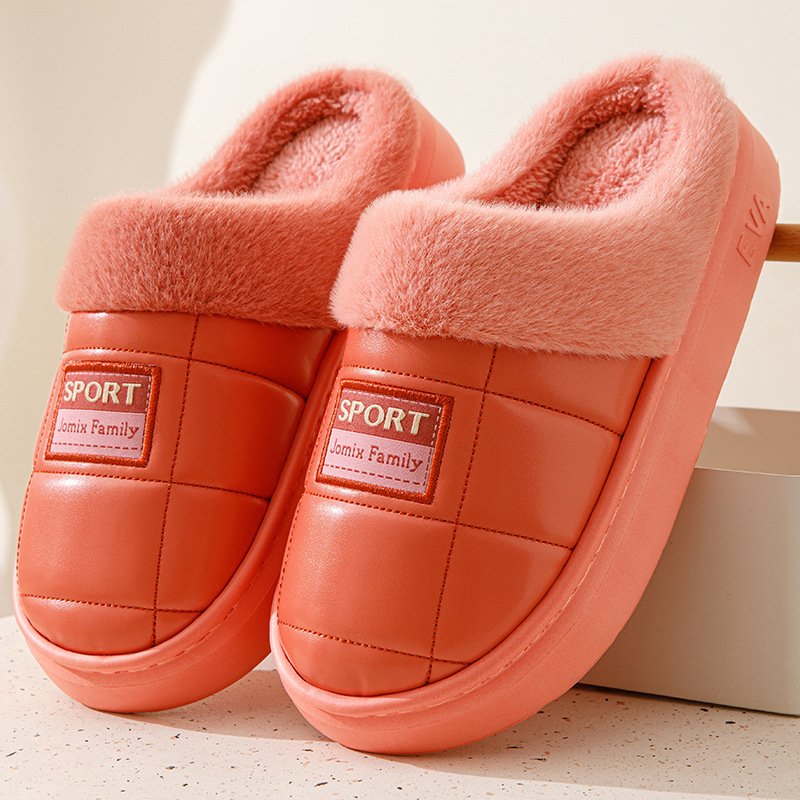 Pu 가죽 면화 슬리퍼 두껍게 면화 슬리퍼 남성 애호가 방수 홈 두꺼운 바닥 미끄럼 방지 따뜻한 기모 가을과 겨울