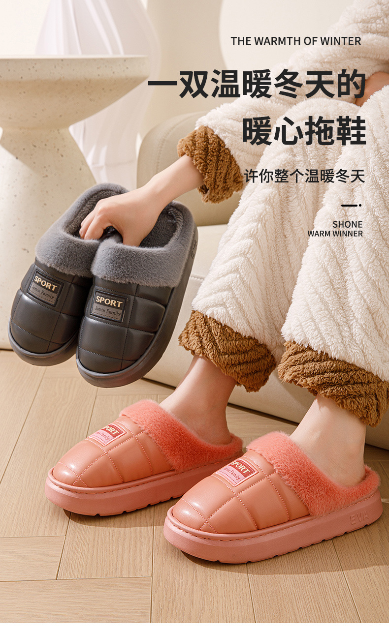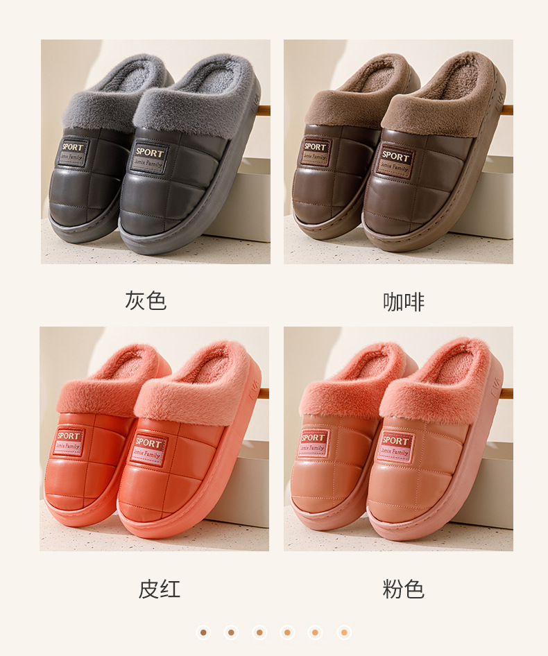Pu 가죽 면화 슬리퍼 두껍게 면화 슬리퍼 남성 애호가 방수 홈 두꺼운 바닥 미끄럼 방지 따뜻한 기모 가을과 겨울스토어 가기