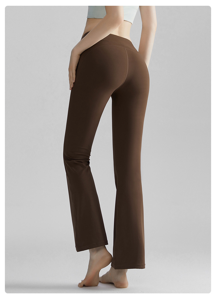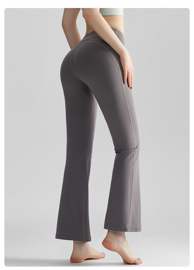 LAHN 누드 피부 친화적인 플레어 요가 팬츠 여성용 엉덩이 노출 스포츠 및 레저 마이크로 플레어 와이드 레그 팬츠 가을