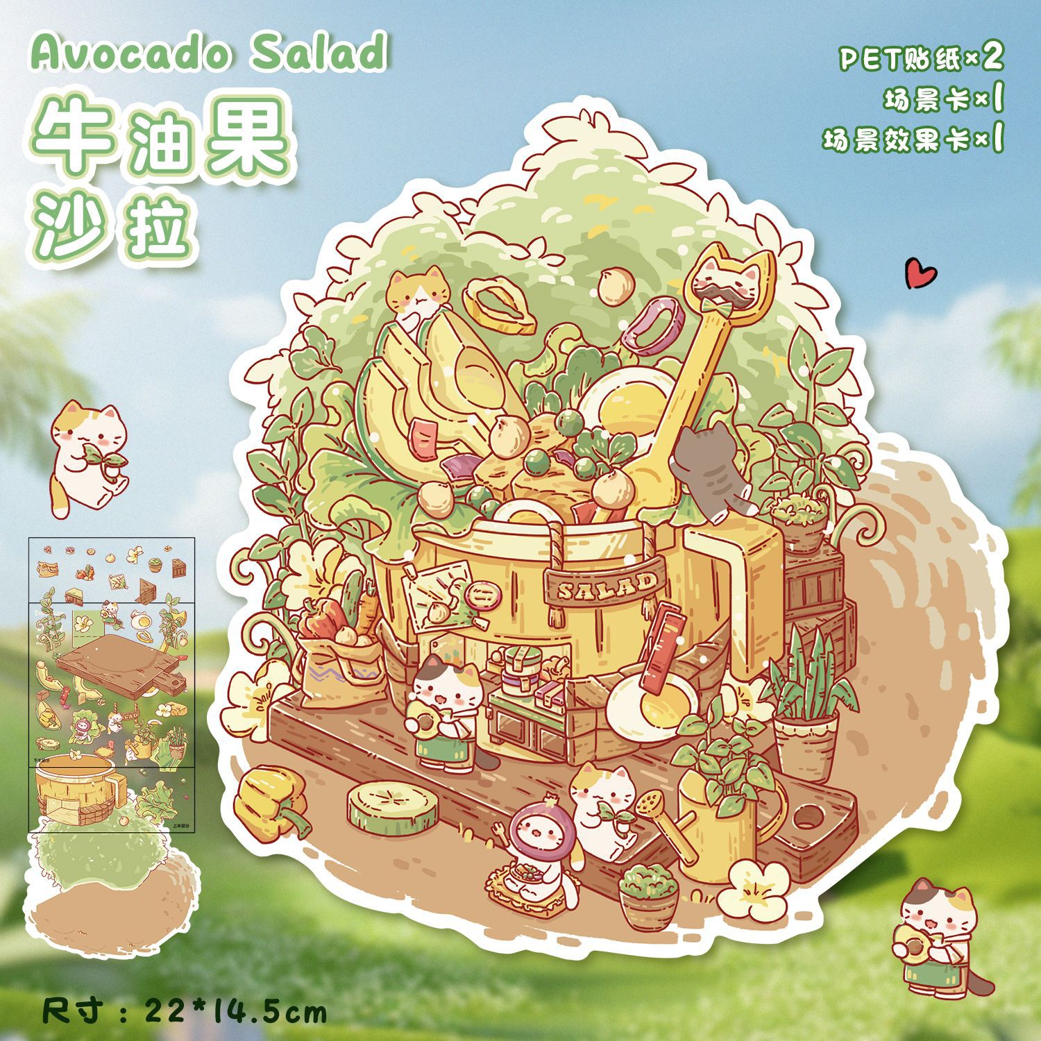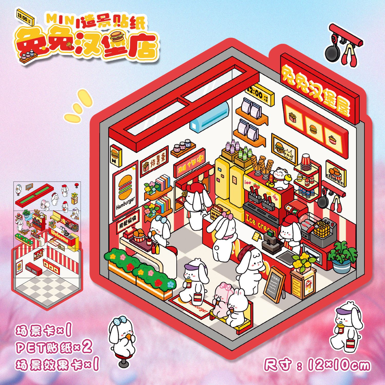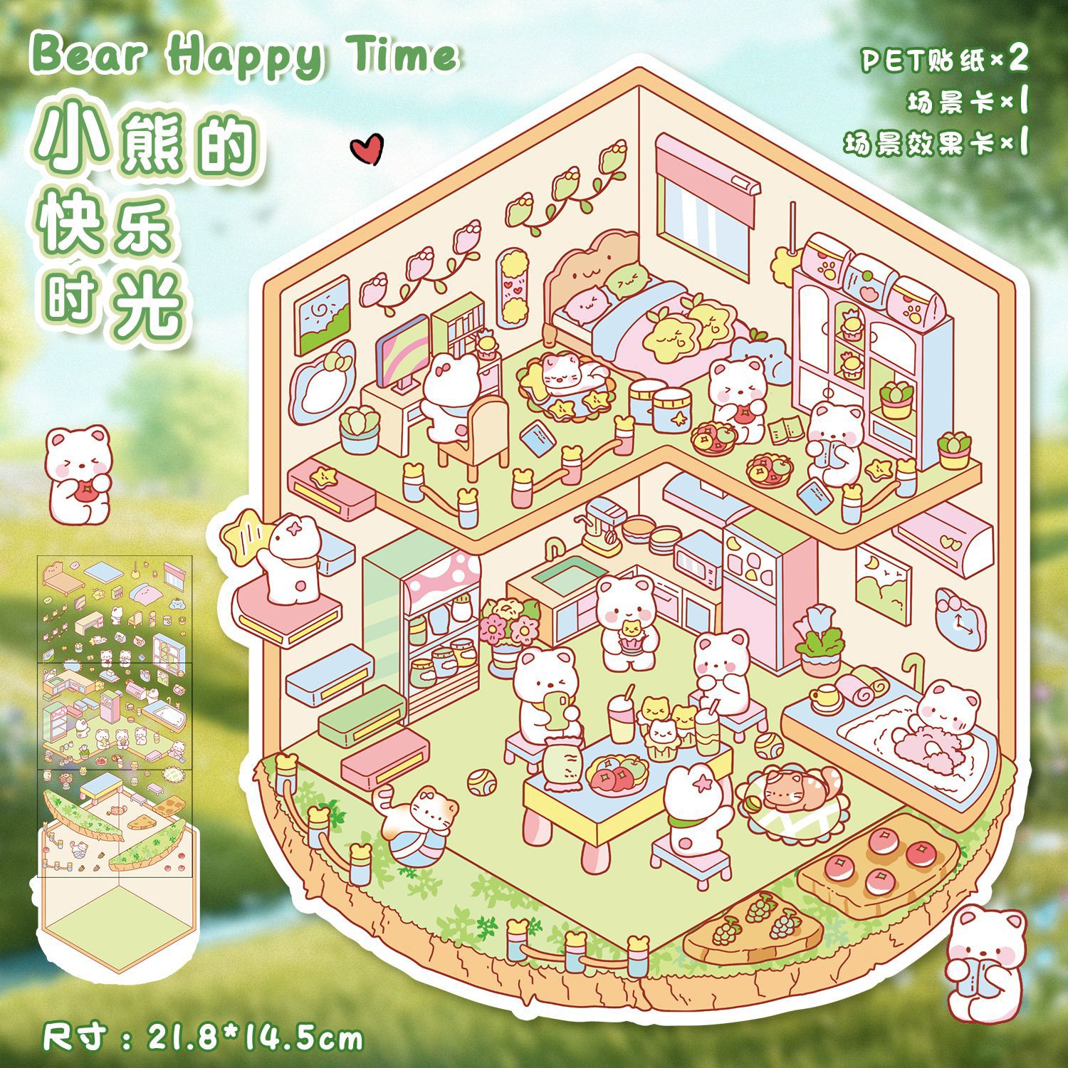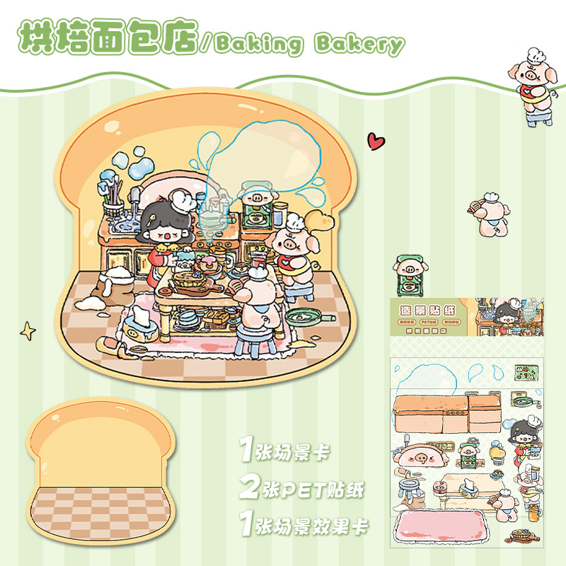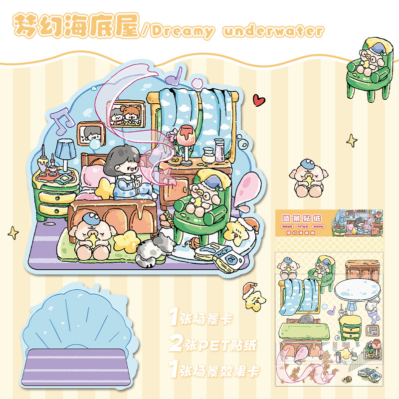 한국 만화 조경 스티커 귀여운 시각적 3D 입체 오두막 작은 빨간 책 감압 조경 장면 손 계정 스티커스토어 가기