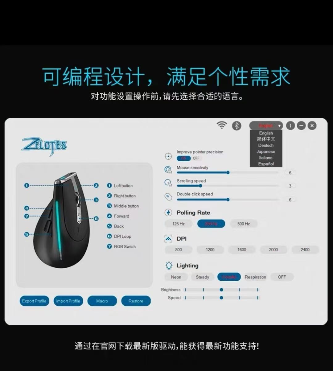 ZELOTES F36 수직 수직 무선 블루투스 듀얼 모드 마우스 충전식 매크로 정의 오피스 게임 마우스스토어 가기