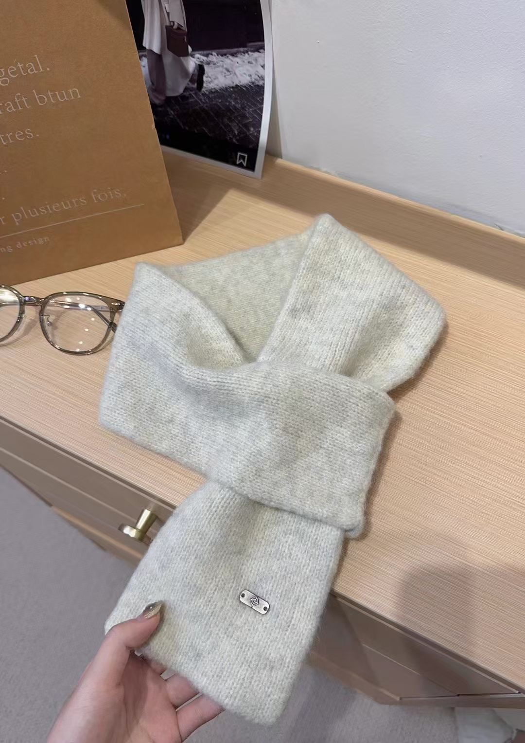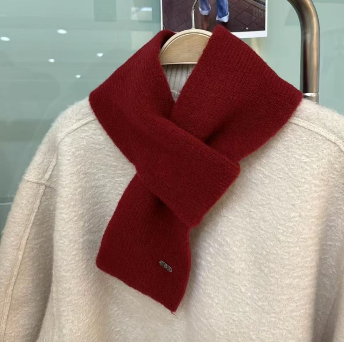 24 겨울 새 일본과 한국 스타일 양모 니트 혼합 귀 잭 레트로 레드 작은 스카프 올 매치 따뜻한 스카프
