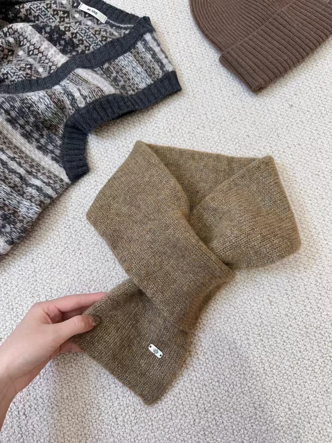 24 겨울 새 일본과 한국 스타일 양모 니트 혼합 귀 잭 레트로 레드 작은 스카프 올 매치 따뜻한 스카프스토어 가기