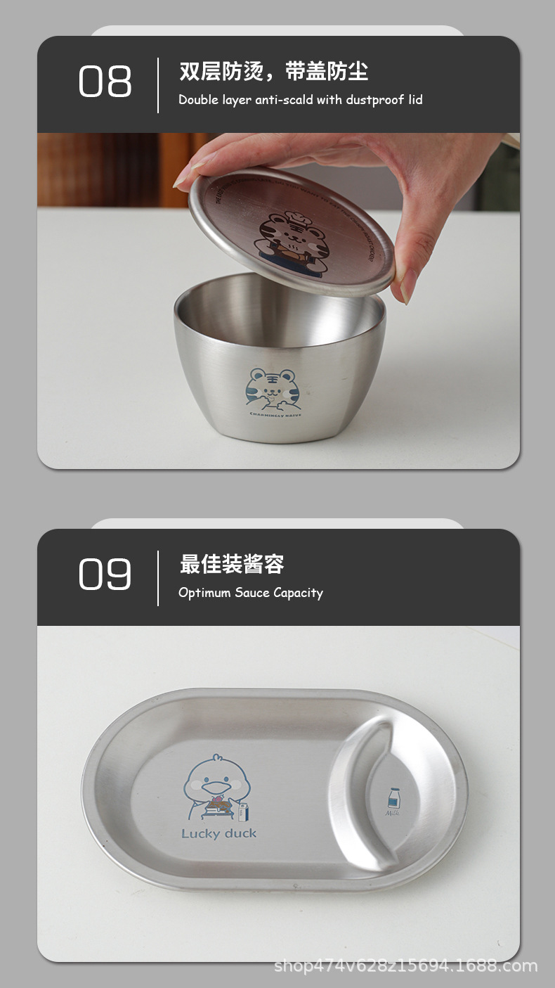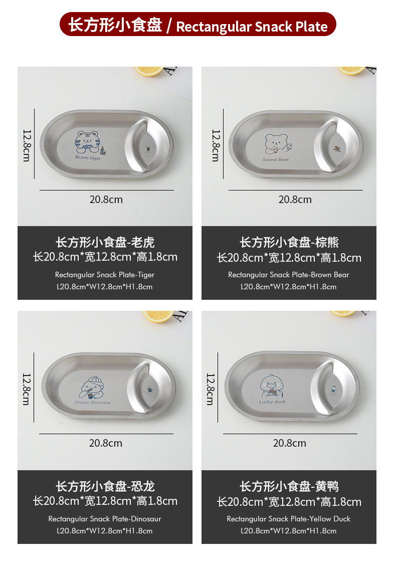 304 스테인레스 스틸 만화 동물 작은 접시 식품 학년 우유 차 가게 스낵 플레이트 감자 칩 플레이트 구획 소스 플레이트스토어 가기