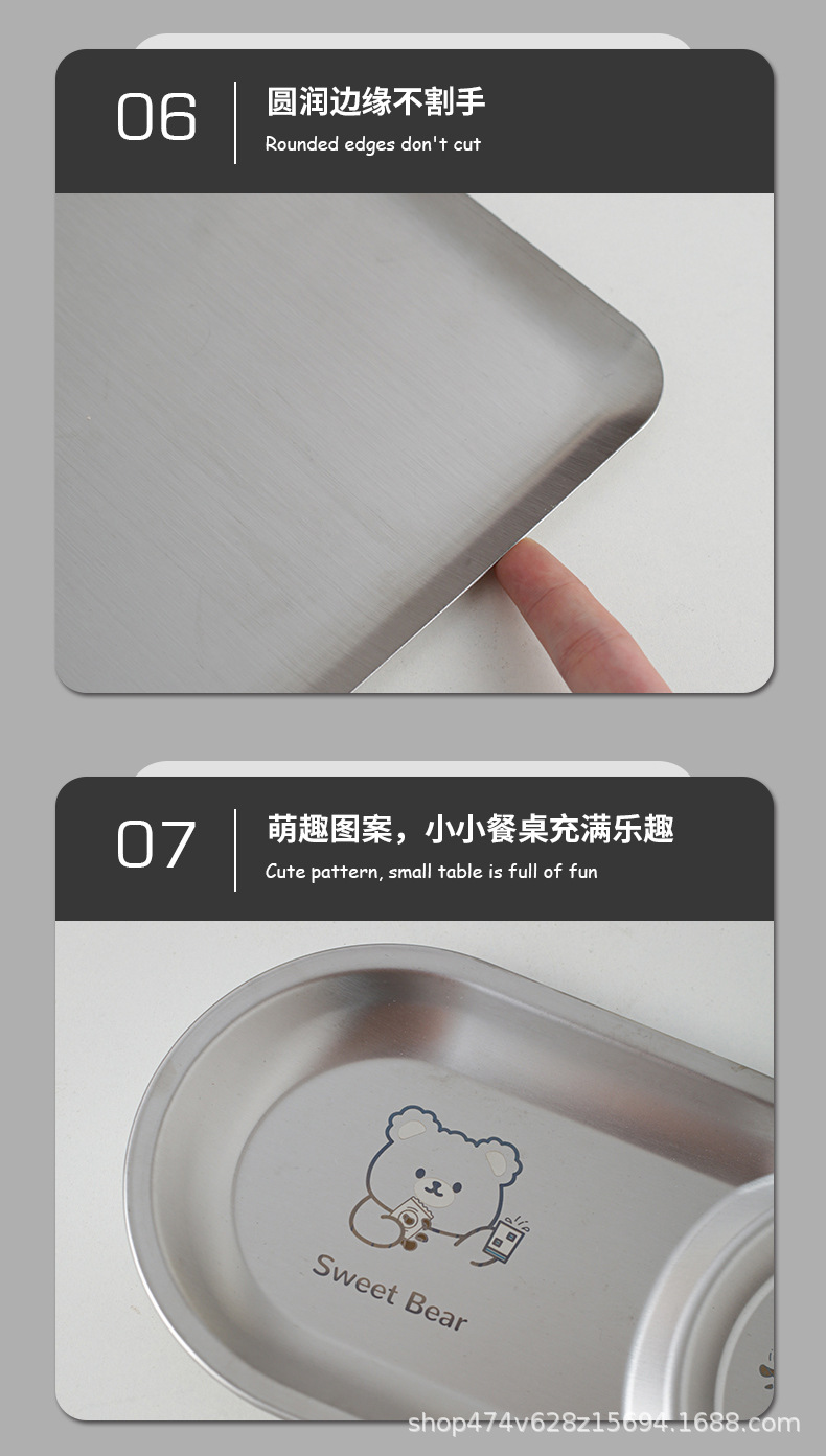 304 스테인레스 스틸 만화 동물 작은 접시 식품 학년 우유 차 가게 스낵 플레이트 감자 칩 플레이트 구획 소스 플레이트