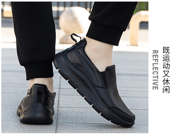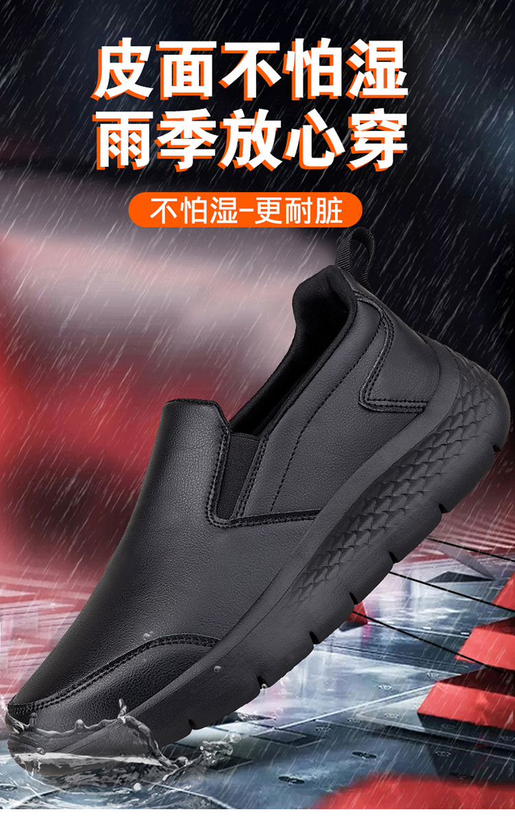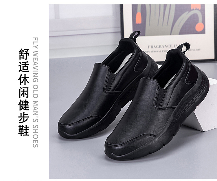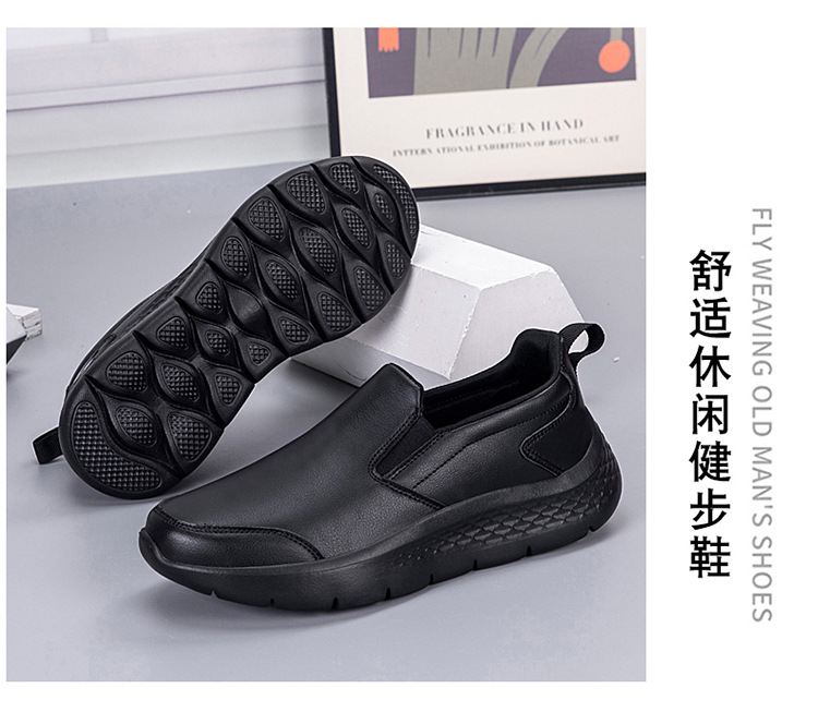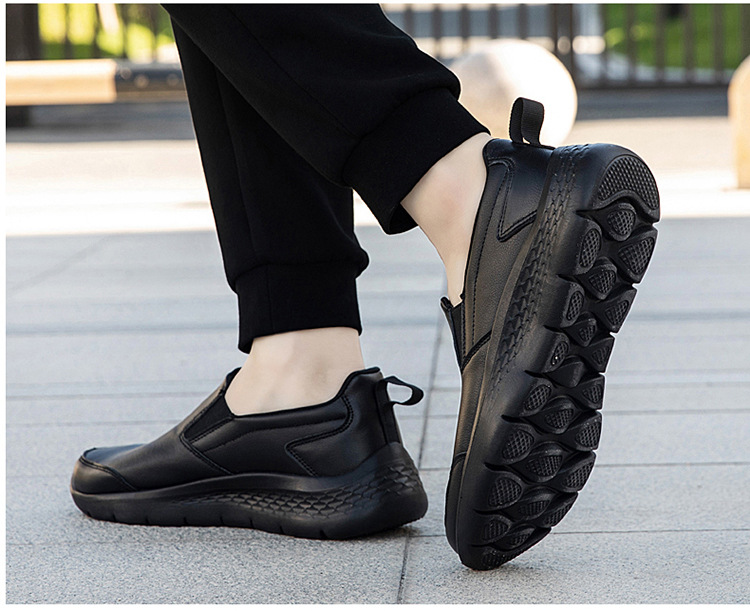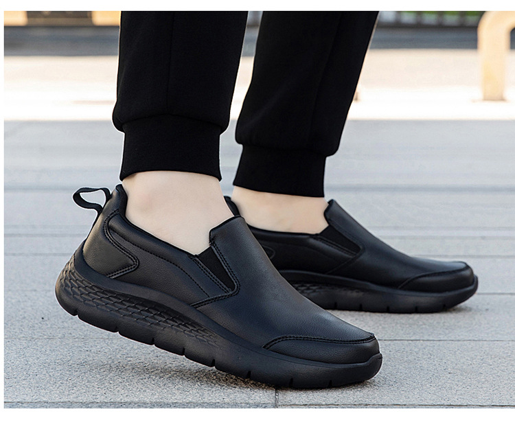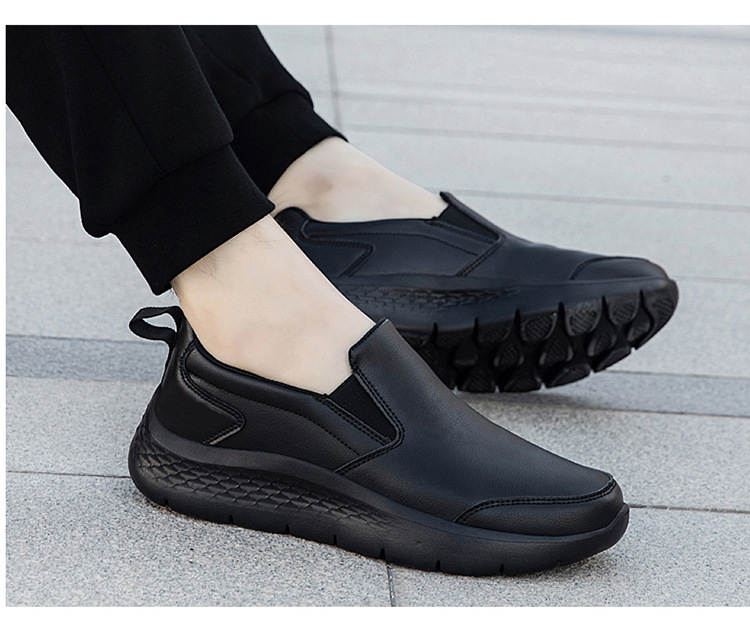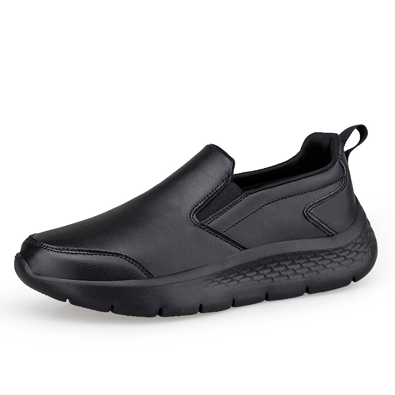중년 및 노인 야외 아빠를위한 모든 검은 색 바닥 방수 캐주얼 게으른 신발 남성 신발 슬립 온 주방 미끄럼 방지 신발