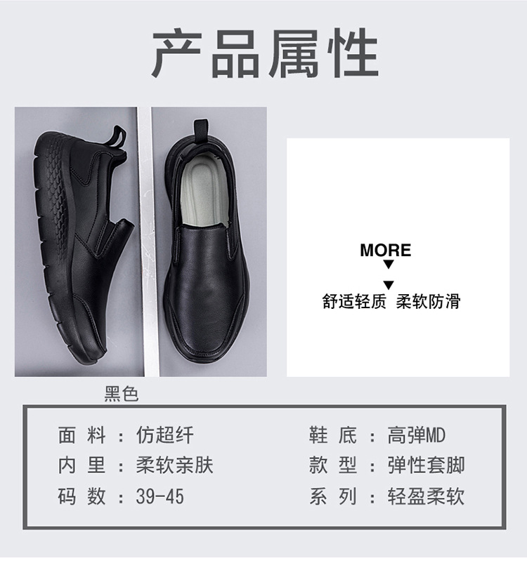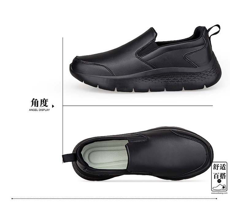 중년 및 노인 야외 아빠를위한 모든 검은 색 바닥 방수 캐주얼 게으른 신발 남성 신발 슬립 온 주방 미끄럼 방지 신발스토어 가기
