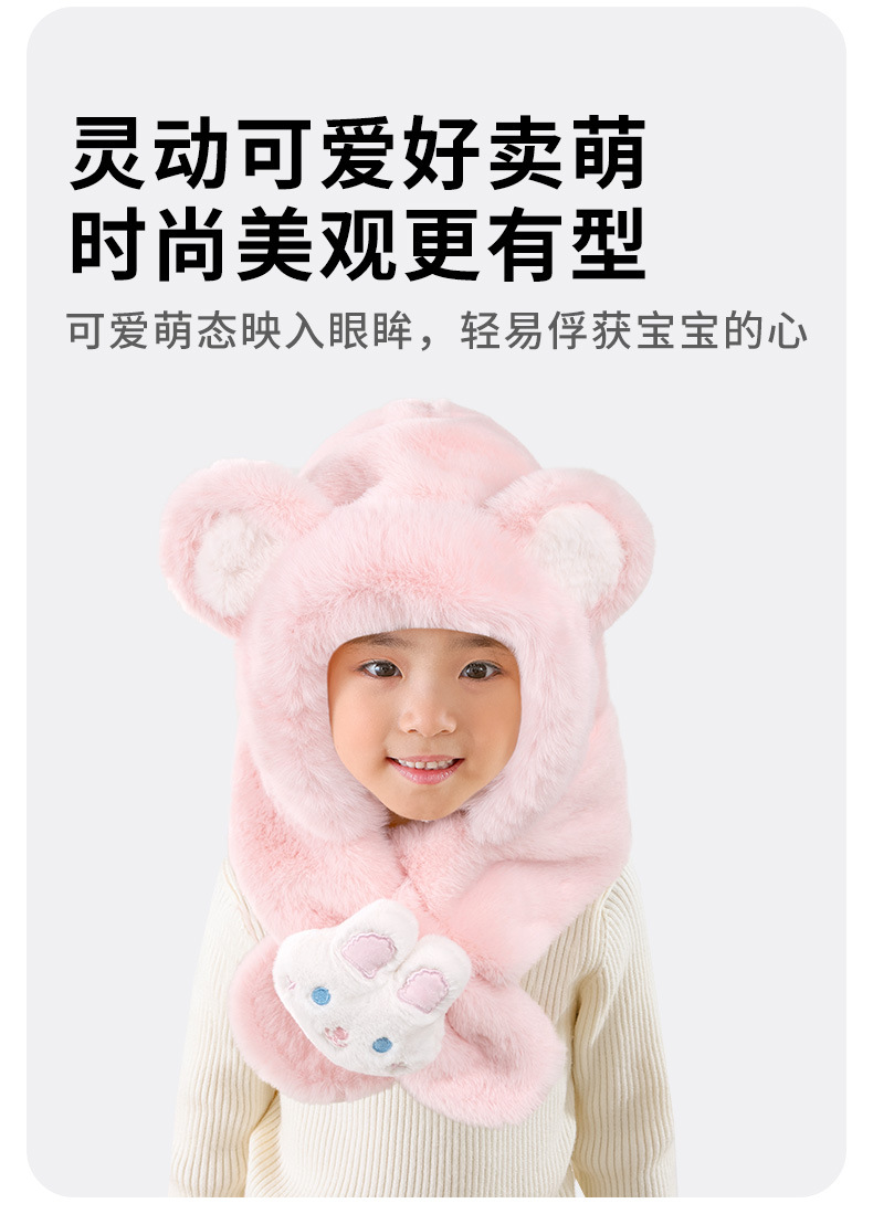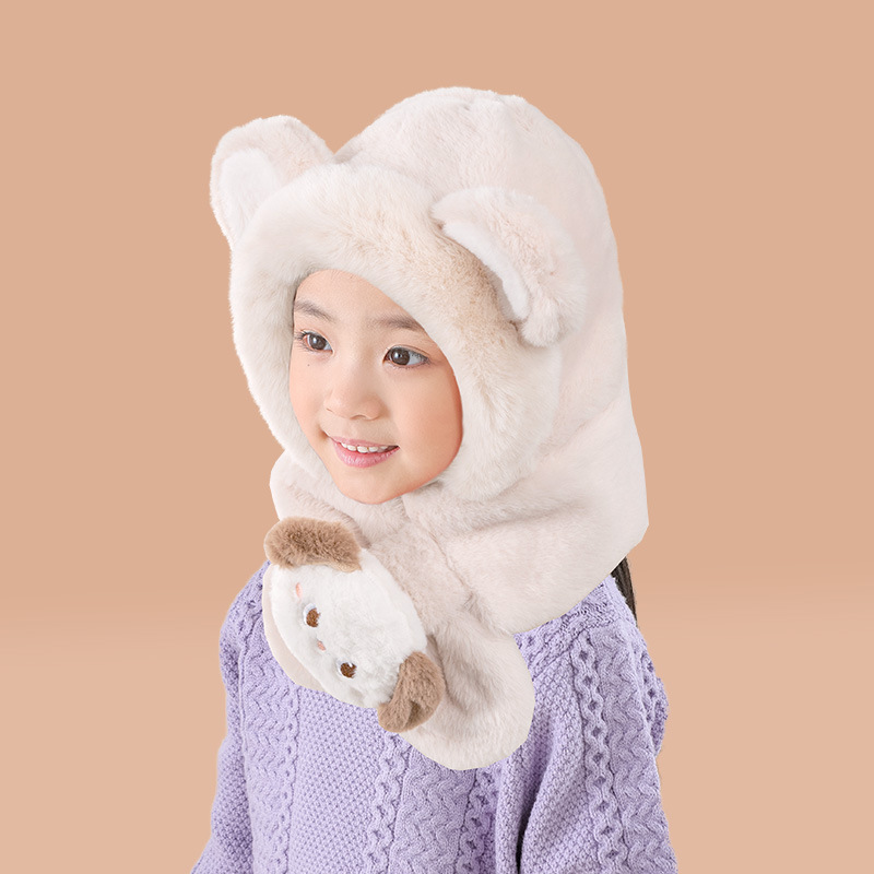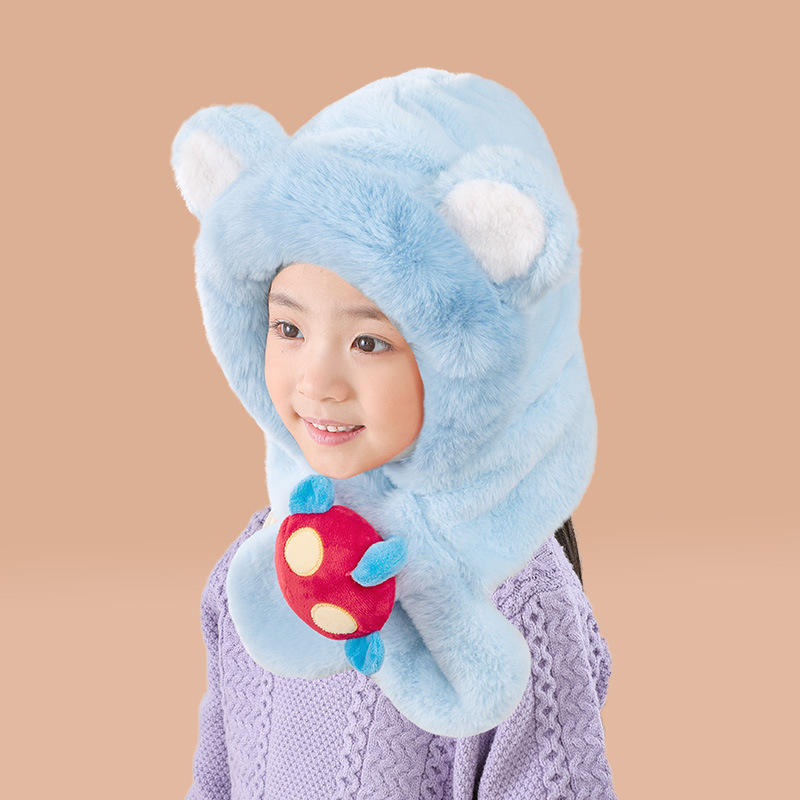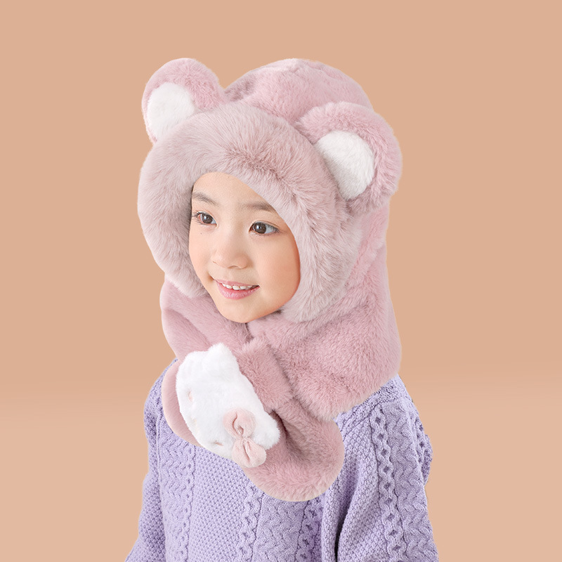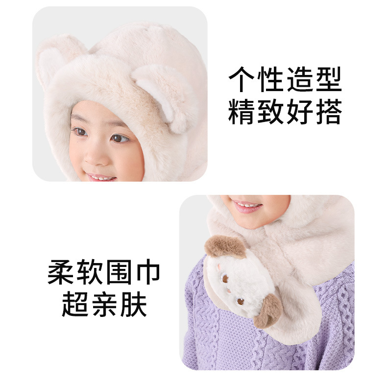 어린이 모자와 스카프 통합 가을과 겨울 따뜻한 봉제 귀여운 만화 아기 풀오버 모자 귀 보호 모자 소년 소녀