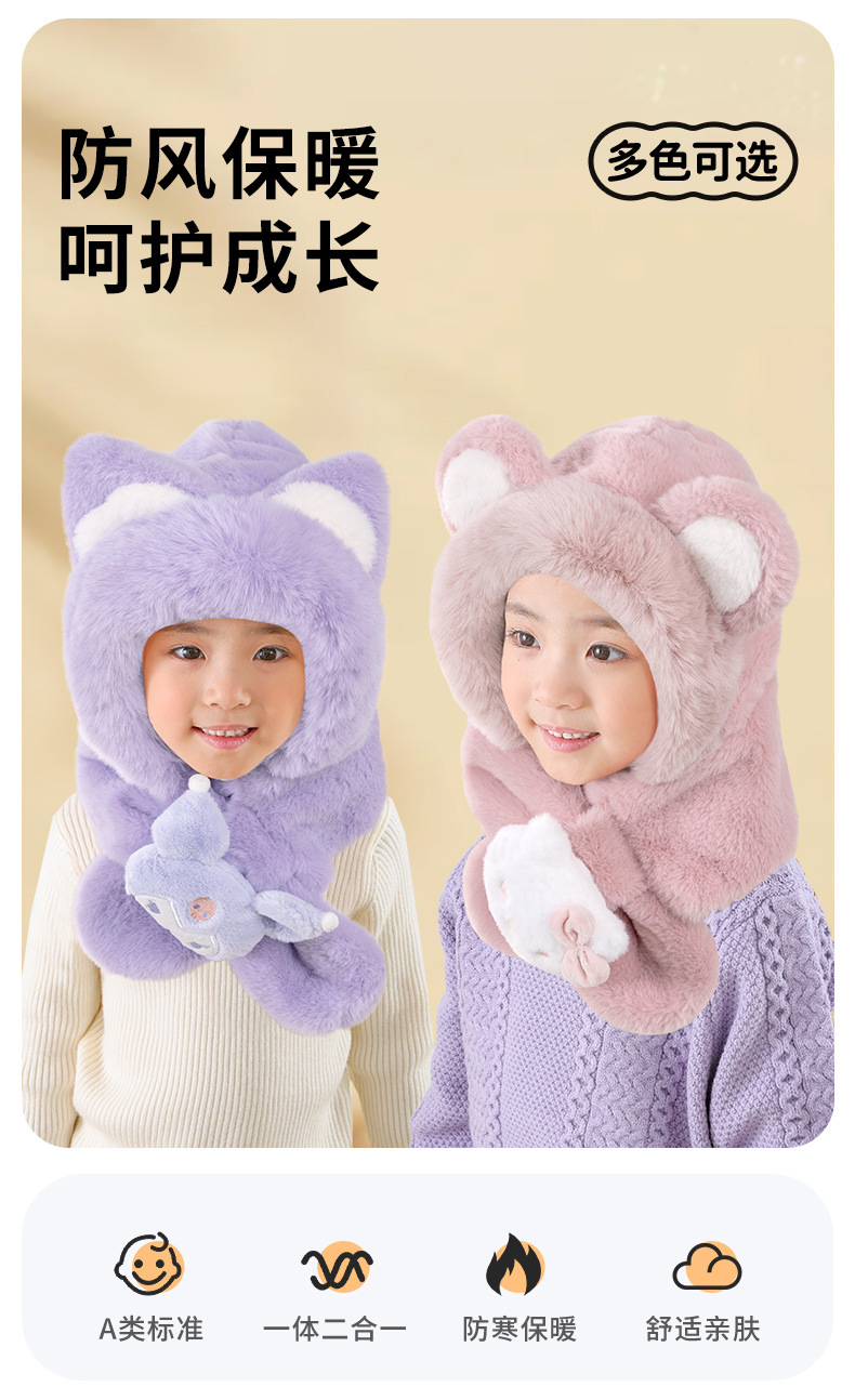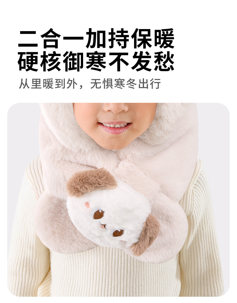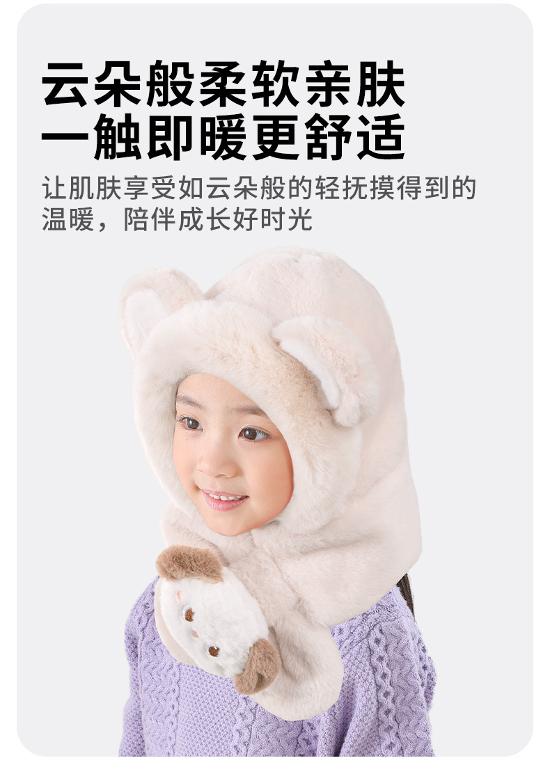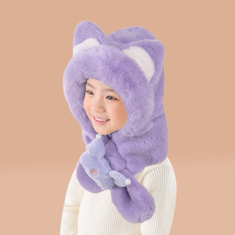 어린이 모자와 스카프 통합 가을과 겨울 따뜻한 봉제 귀여운 만화 아기 풀오버 모자 귀 보호 모자 소년 소녀