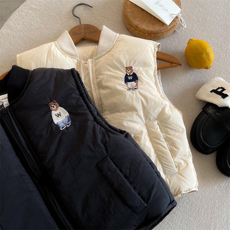 어린이용 면 조끼, 남아용 2025 겨울 조끼, 아기용 두꺼운 보온 조끼, 여아용 곰돌이 상의