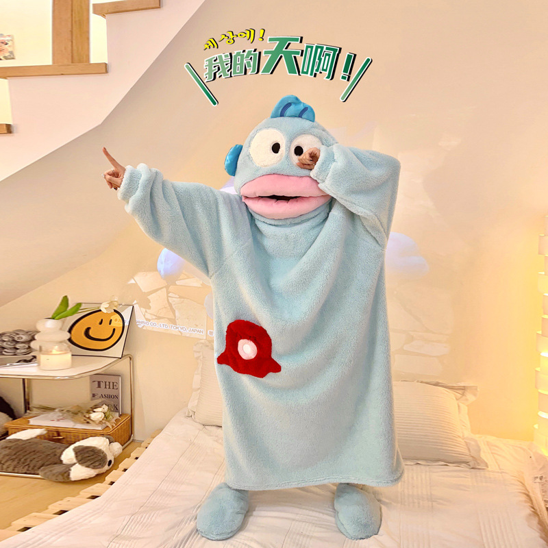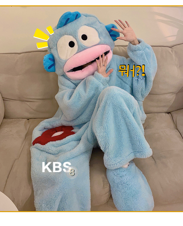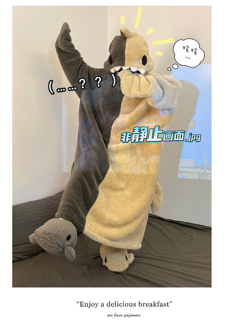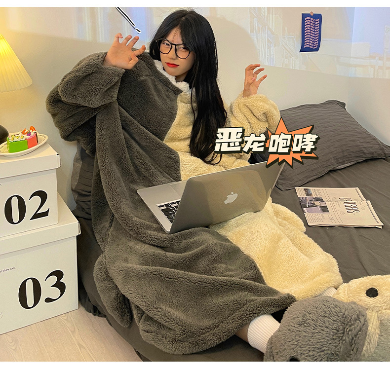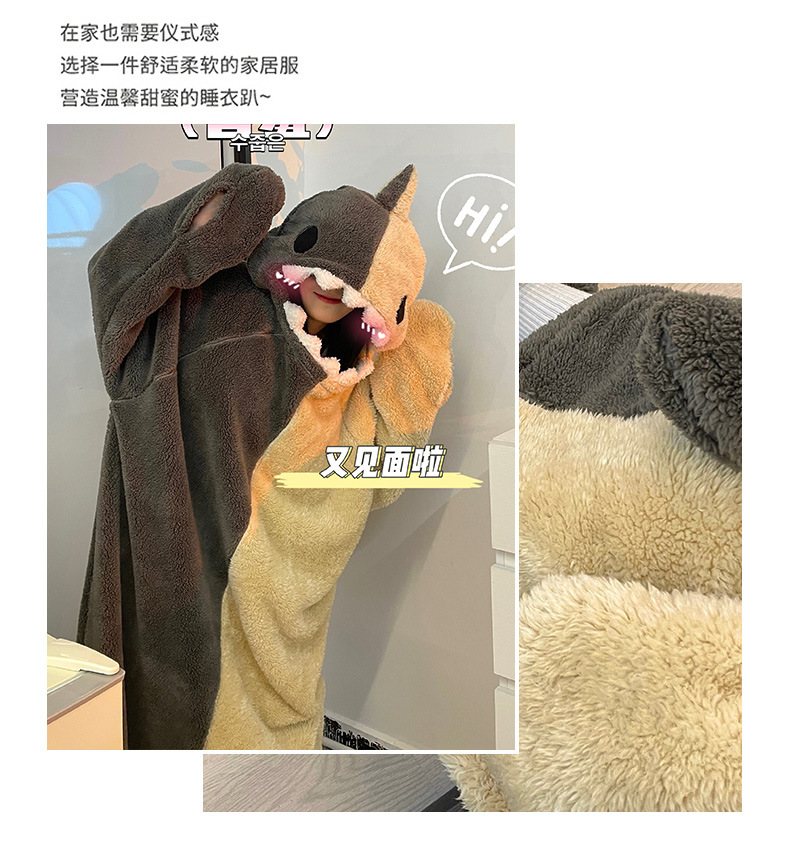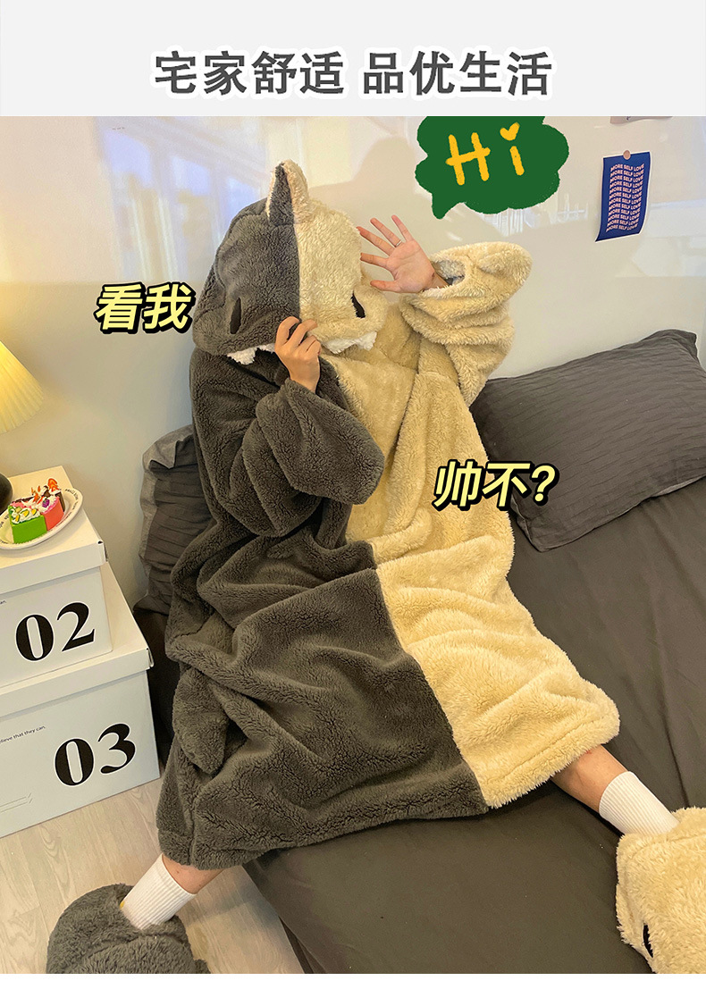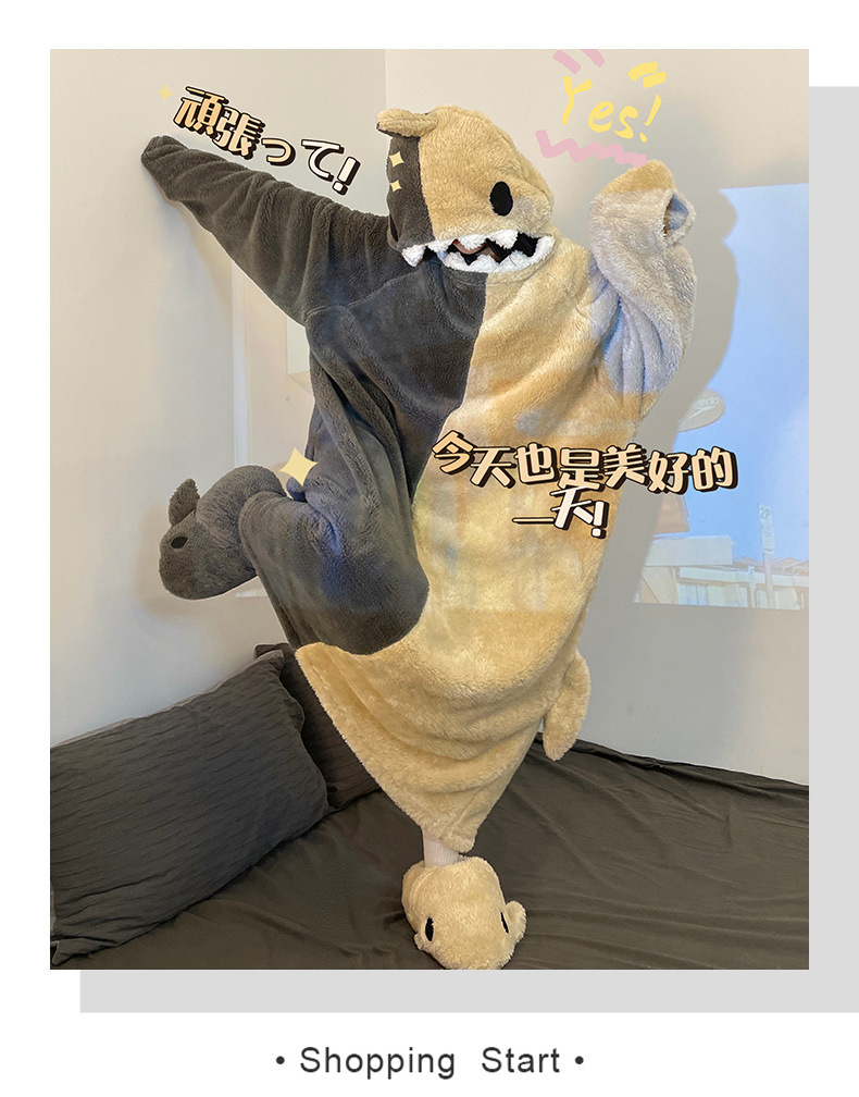 산호 양털 잠옷 여성 겨울 결합 재미있는 모래 조각 커플 침낭 귀여운 만화 상어 잠옷 플란넬 남성스토어 가기