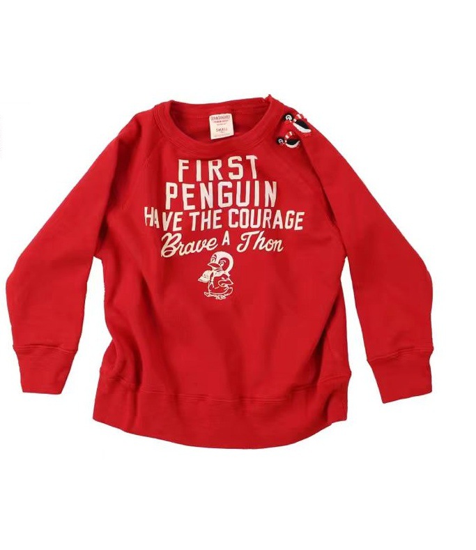 일본 아동복, 남성 및 여성 스웨트 셔츠, 세련된 펭귄 트렌디 브랜드 테리 스웨트 셔츠, 프린트 플로킹 스타일스토어 가기