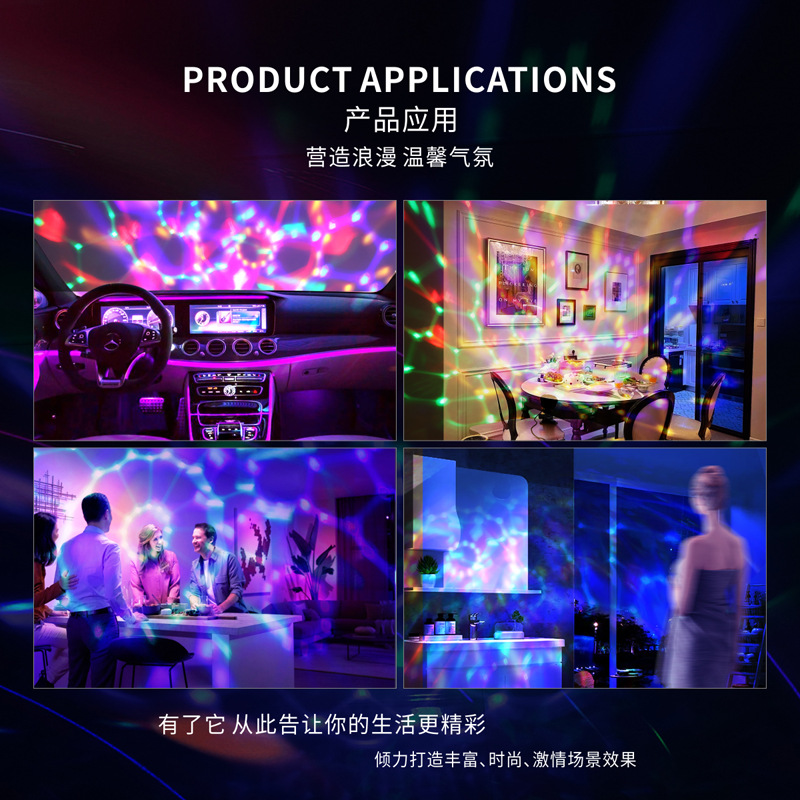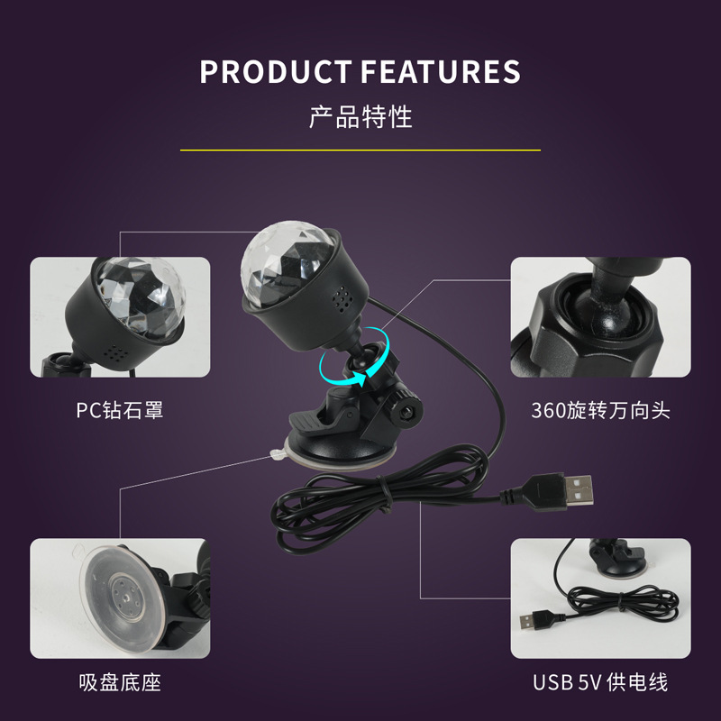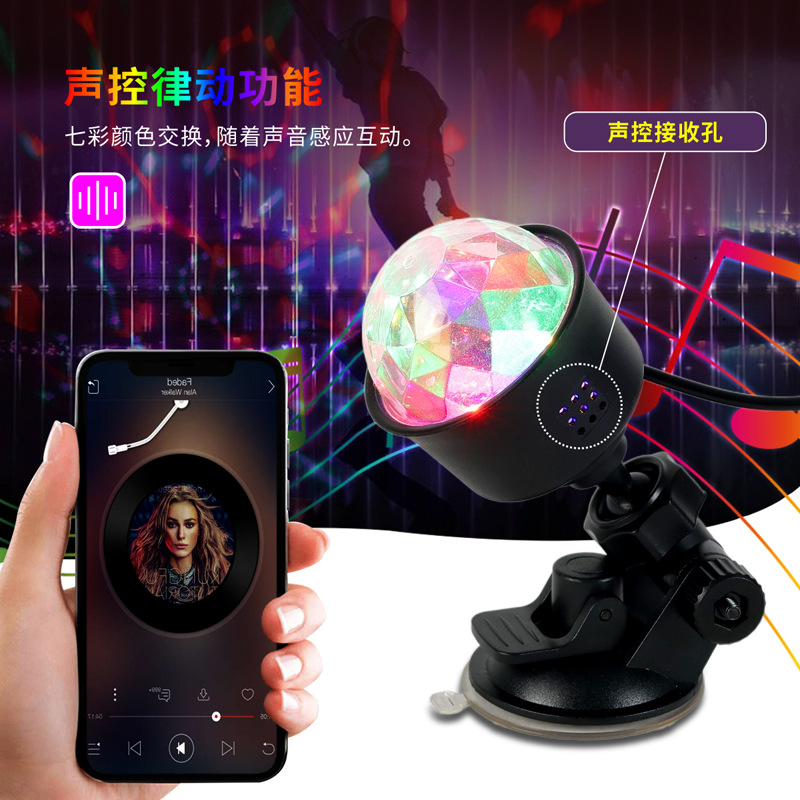 USB 자동차 주변 조명, 음성 제어 음악, 깜박이는 조명, 다채로운 깜박이는 조명, 흡입 컵이 있는 자동차 실내 장식 리듬 조명