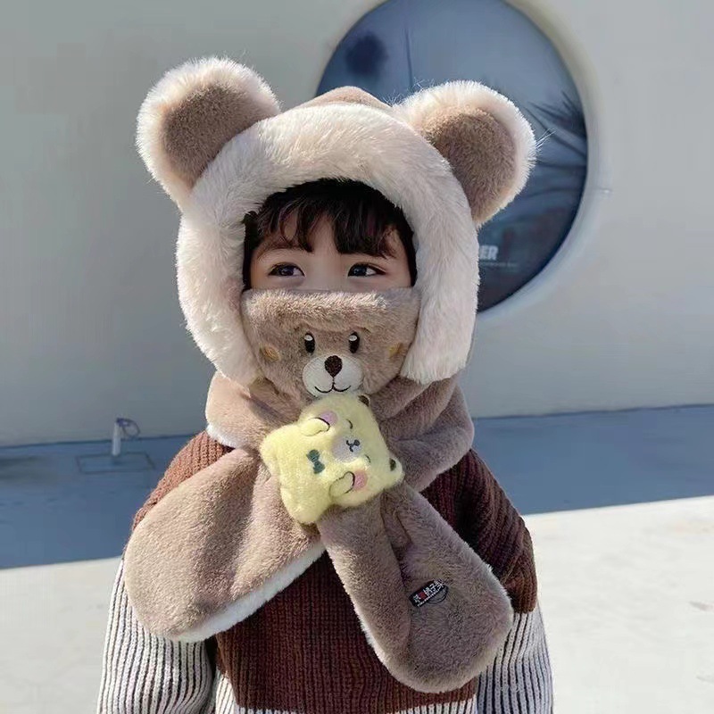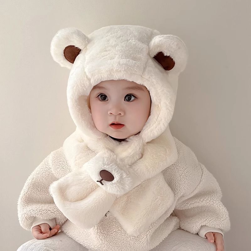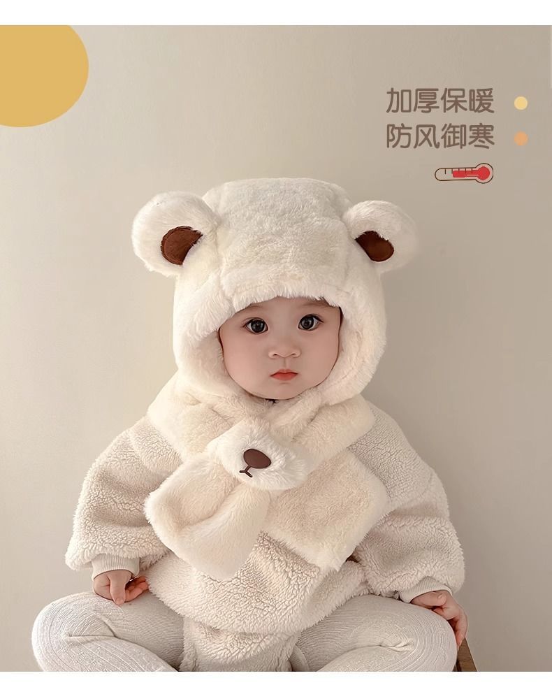 아기 모자 가을과 겨울 소년 소녀 스카프 올인원 곰 박제 모자 겨울 어린이 기모 두꺼운 방풍 모자