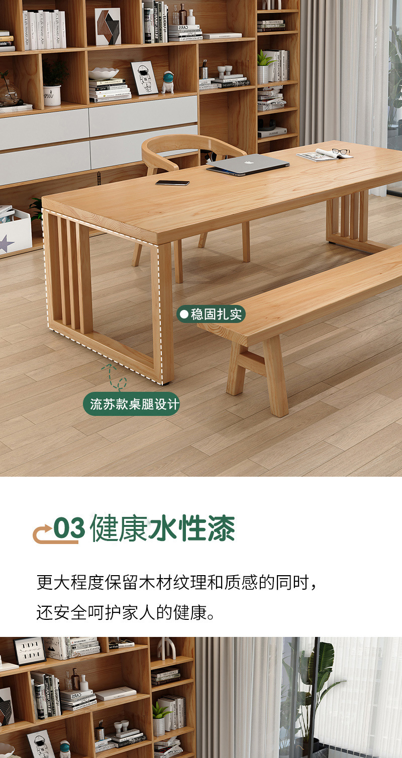 단단한 나무 거실 큰 긴 책상 재 큰 보드 테이블 홈 큰 테이블 도서관 테이블 로그 컴퓨터 테이블스토어 가기