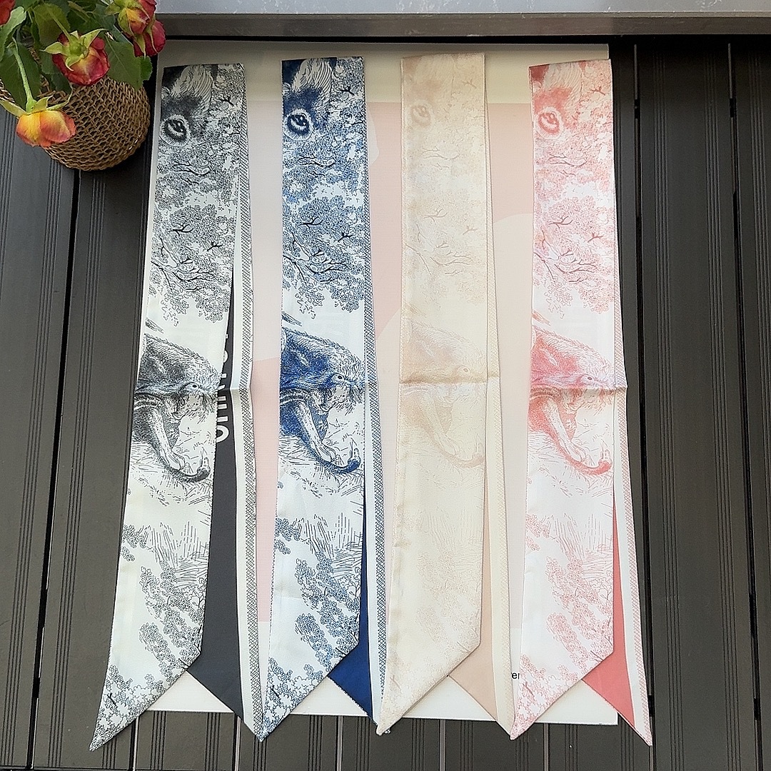D의 작은 리본 여우원숭이 프린트 실크 스카프는 가방 손잡이, 헤어 액세서리, 벨트, 기념품 가방 리본, 동백꽃으로 활용 가능합니다.스토어 가기