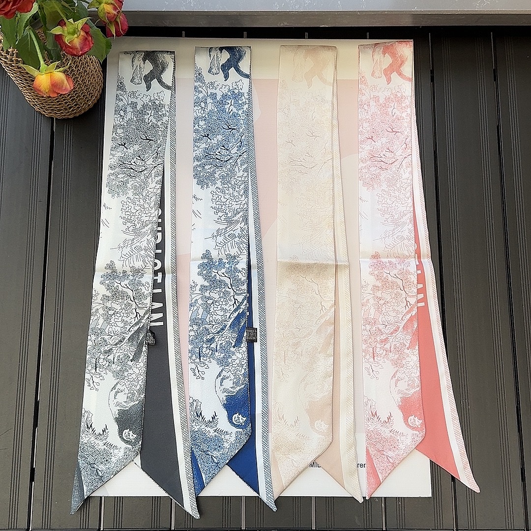 D의 작은 리본 여우원숭이 프린트 실크 스카프는 가방 손잡이, 헤어 액세서리, 벨트, 기념품 가방 리본, 동백꽃으로 활용 가능합니다.