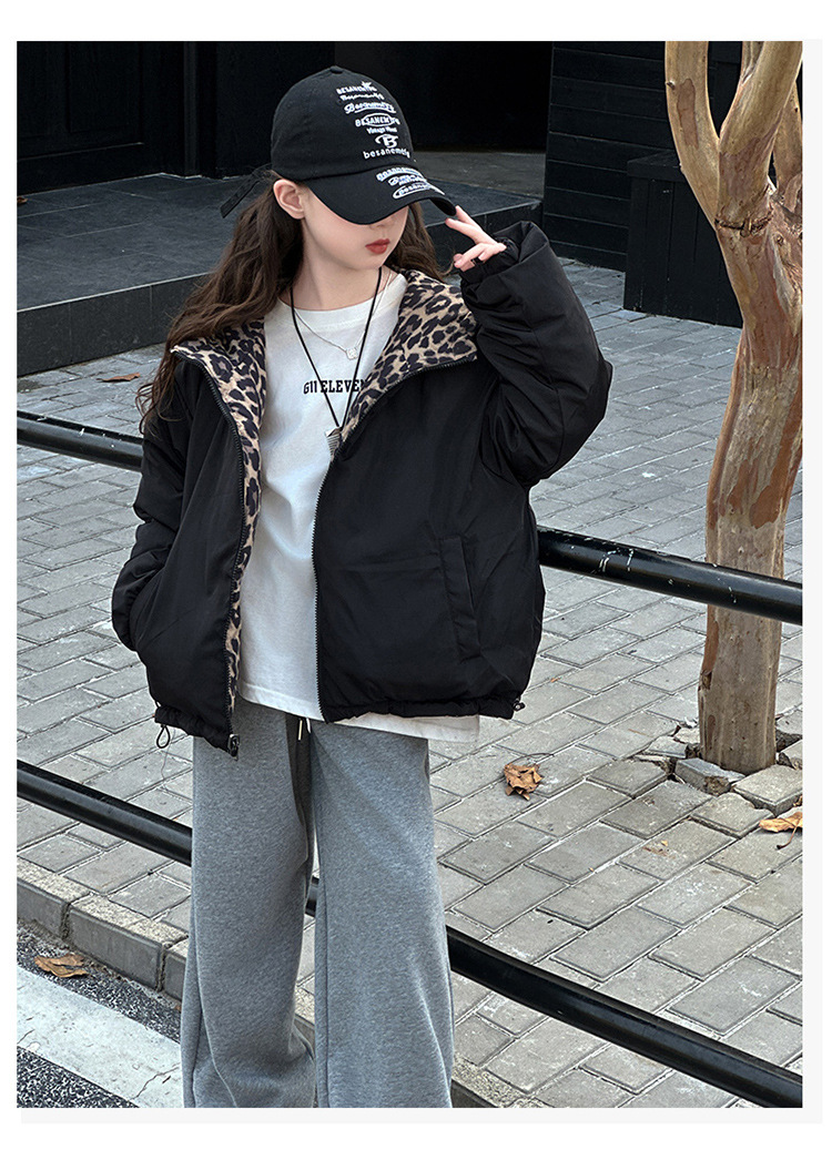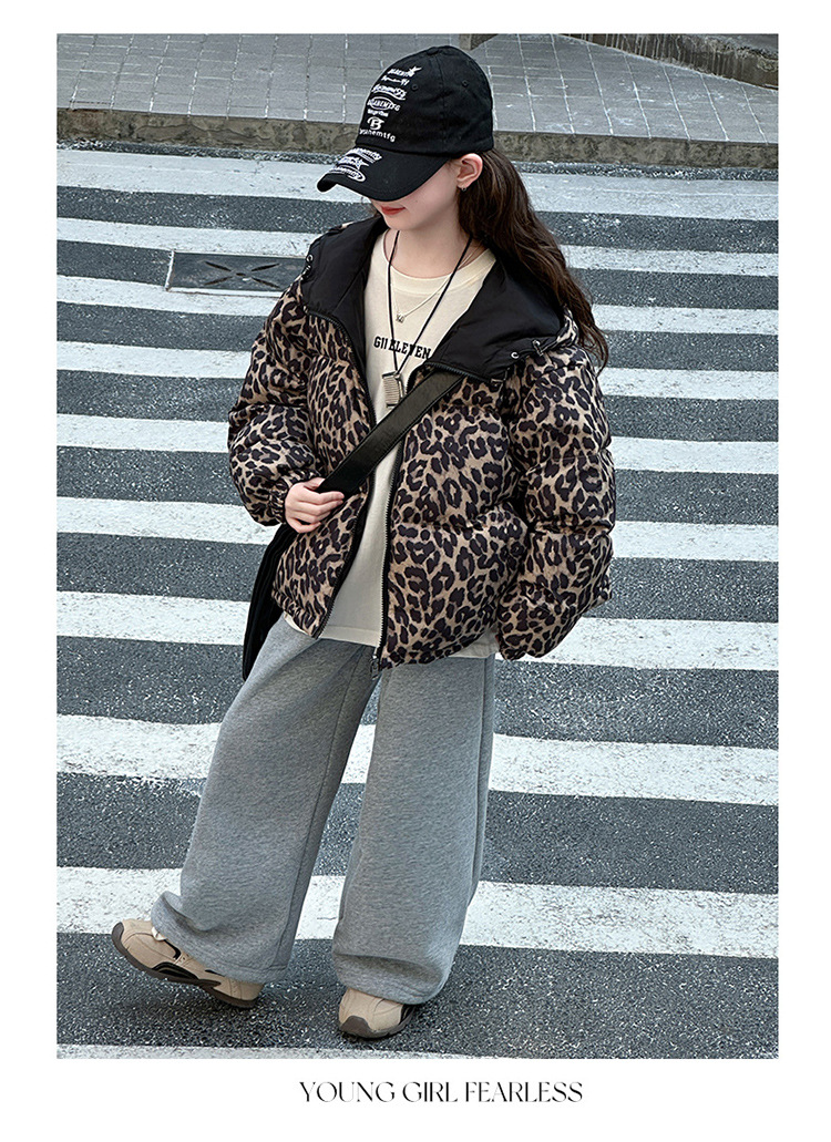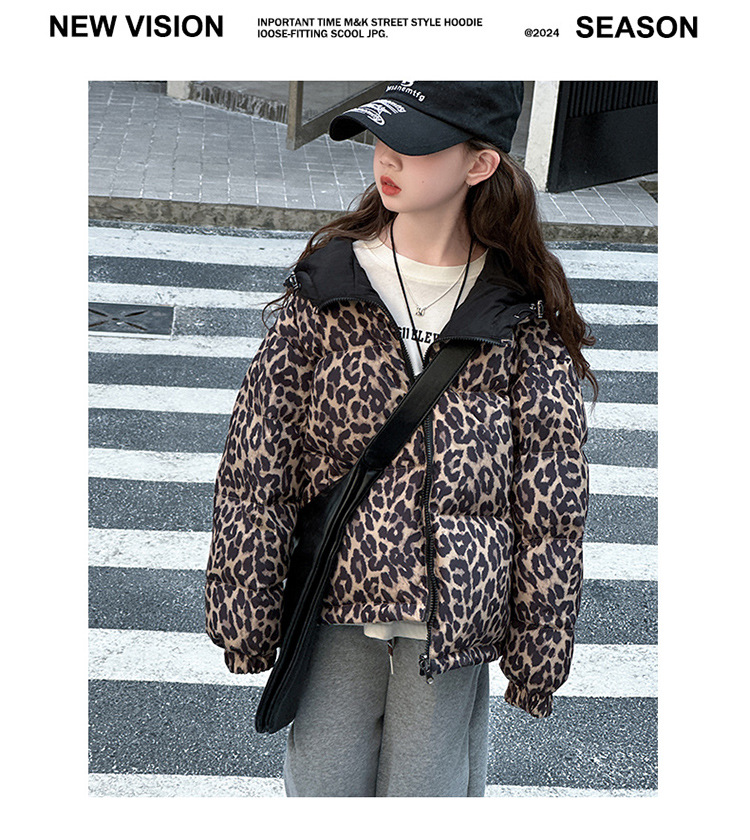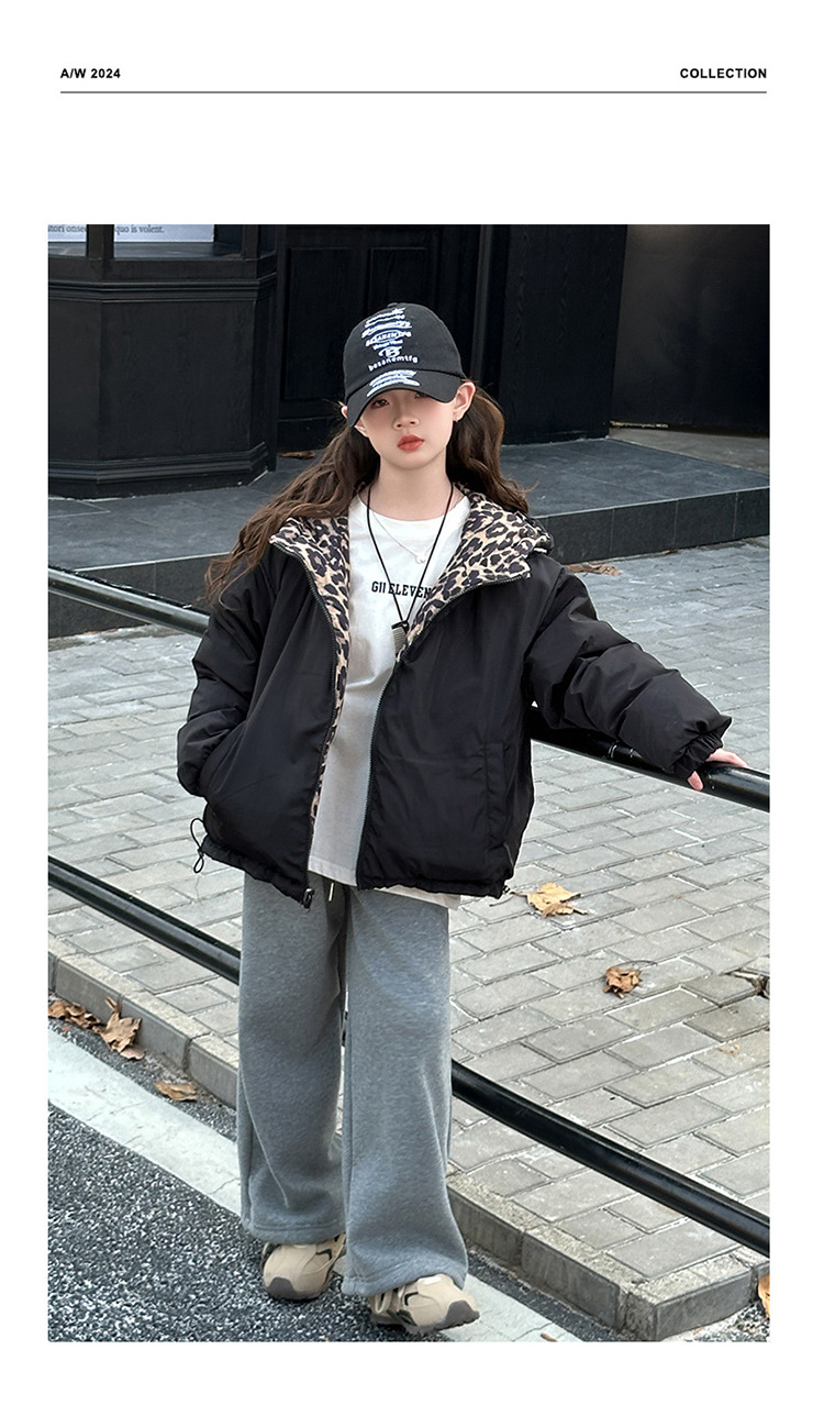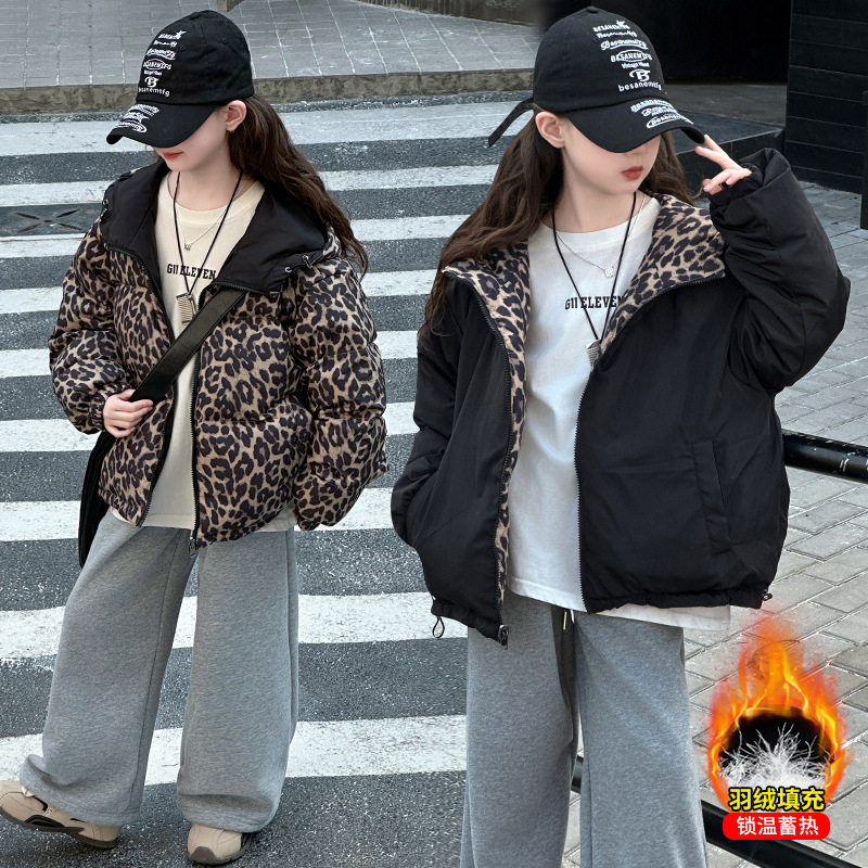 여자 패딩 양면복 폭발 레오파드 무늬 다운 재킷 겨울 2024 유행 어린이 빵 의류 헤어 세대