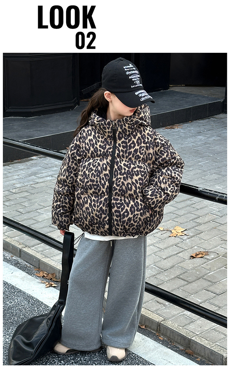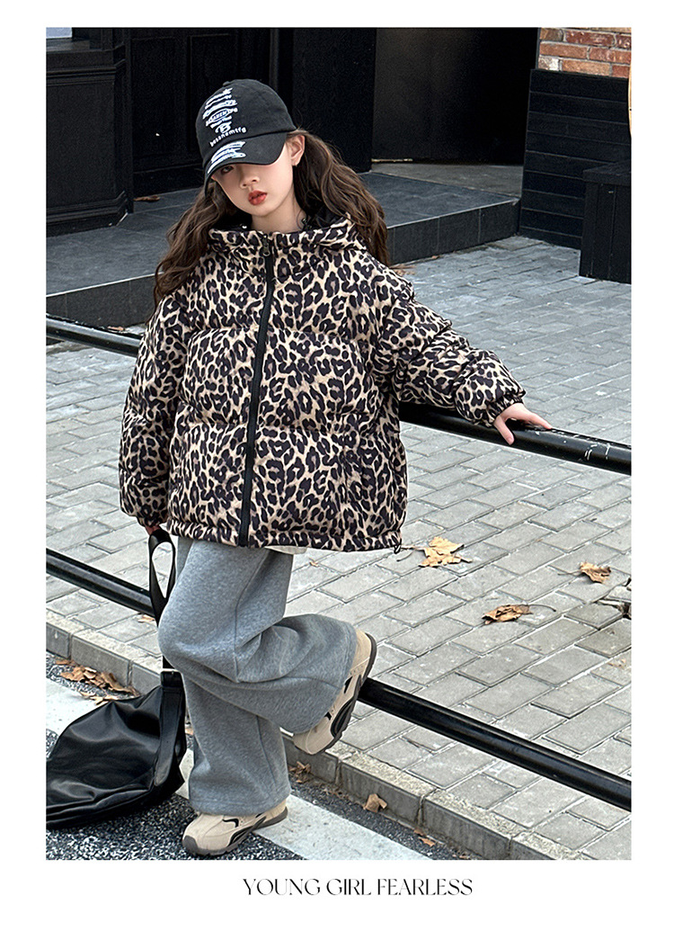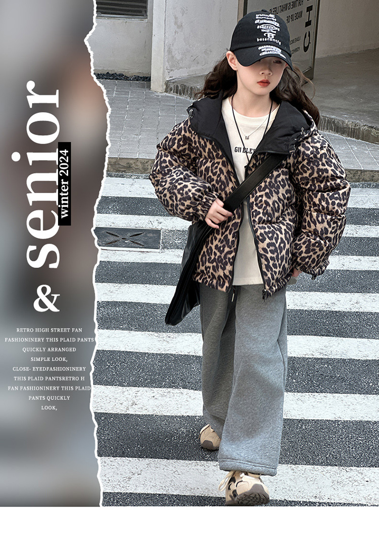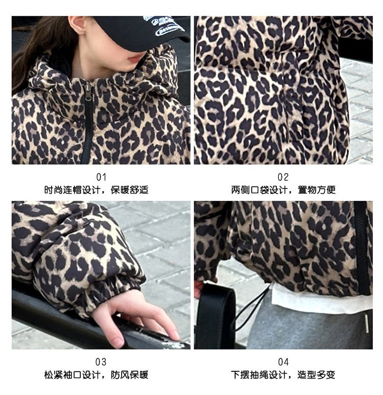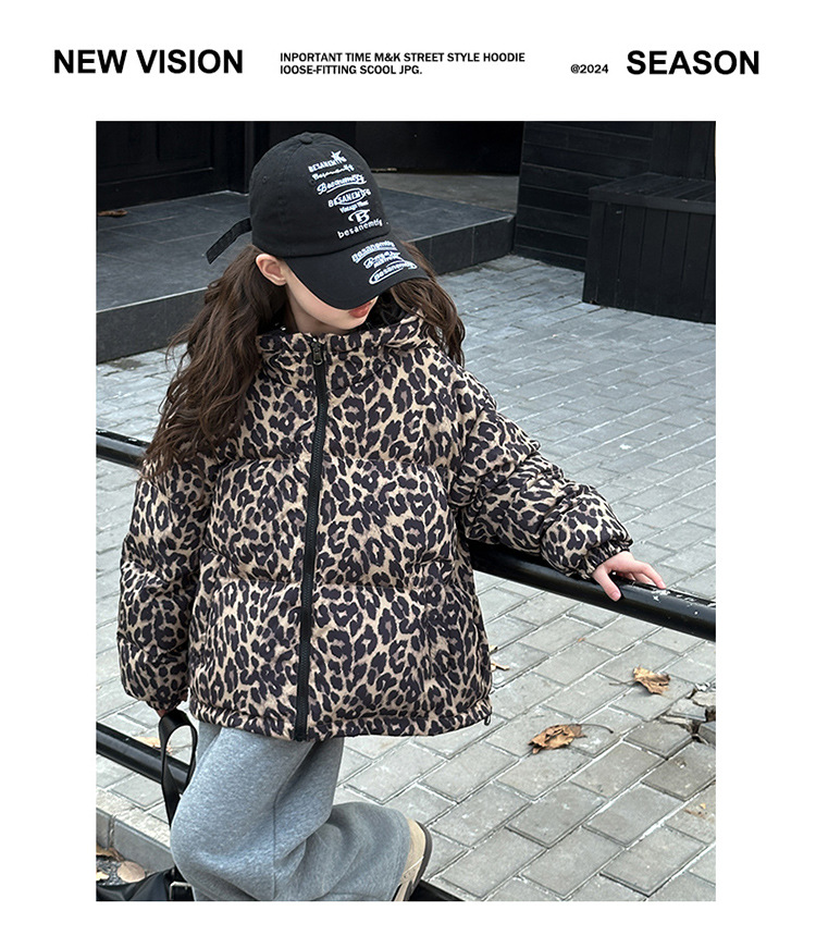 여자 패딩 양면복 폭발 레오파드 무늬 다운 재킷 겨울 2024 유행 어린이 빵 의류 헤어 세대