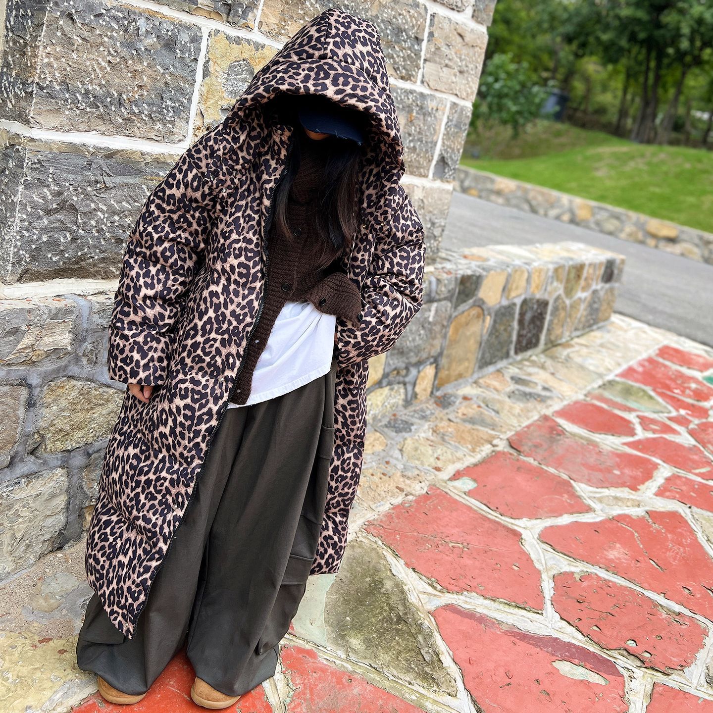 • 레오파드 프린트 롱 다운 재킷