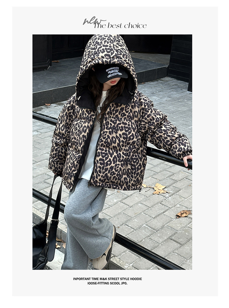 여자 패딩 양면복 폭발 레오파드 무늬 다운 재킷 겨울 2024 유행 어린이 빵 의류 헤어 세대스토어 가기