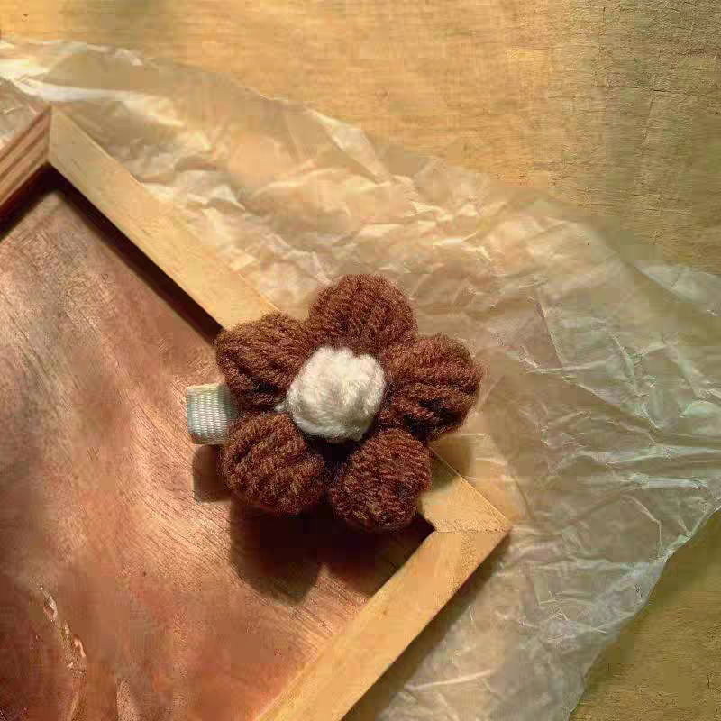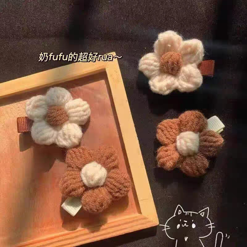 라이트 베이지 빈티지 뜨개질 울 꽃 헤어 클립 퍼프 꽃 헤어 클립 부드러운 앞머리 클립 사이드 클립 가을과 겨울 헤어 액세서리