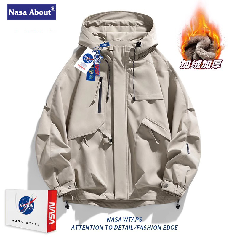 NASA2025 새로운 보라색 벨벳 두꺼운 재킷 남성 가을, 겨울 유행 느슨한 등산 재킷 재킷스토어 가기