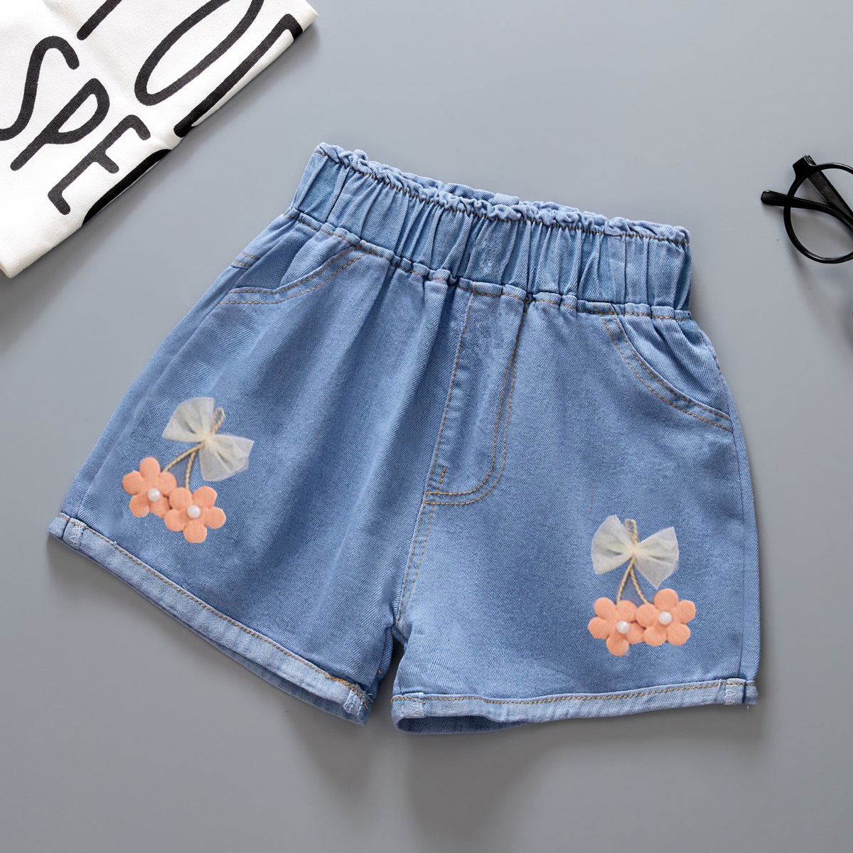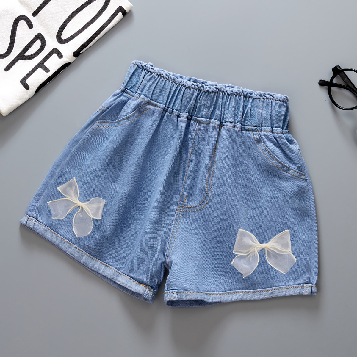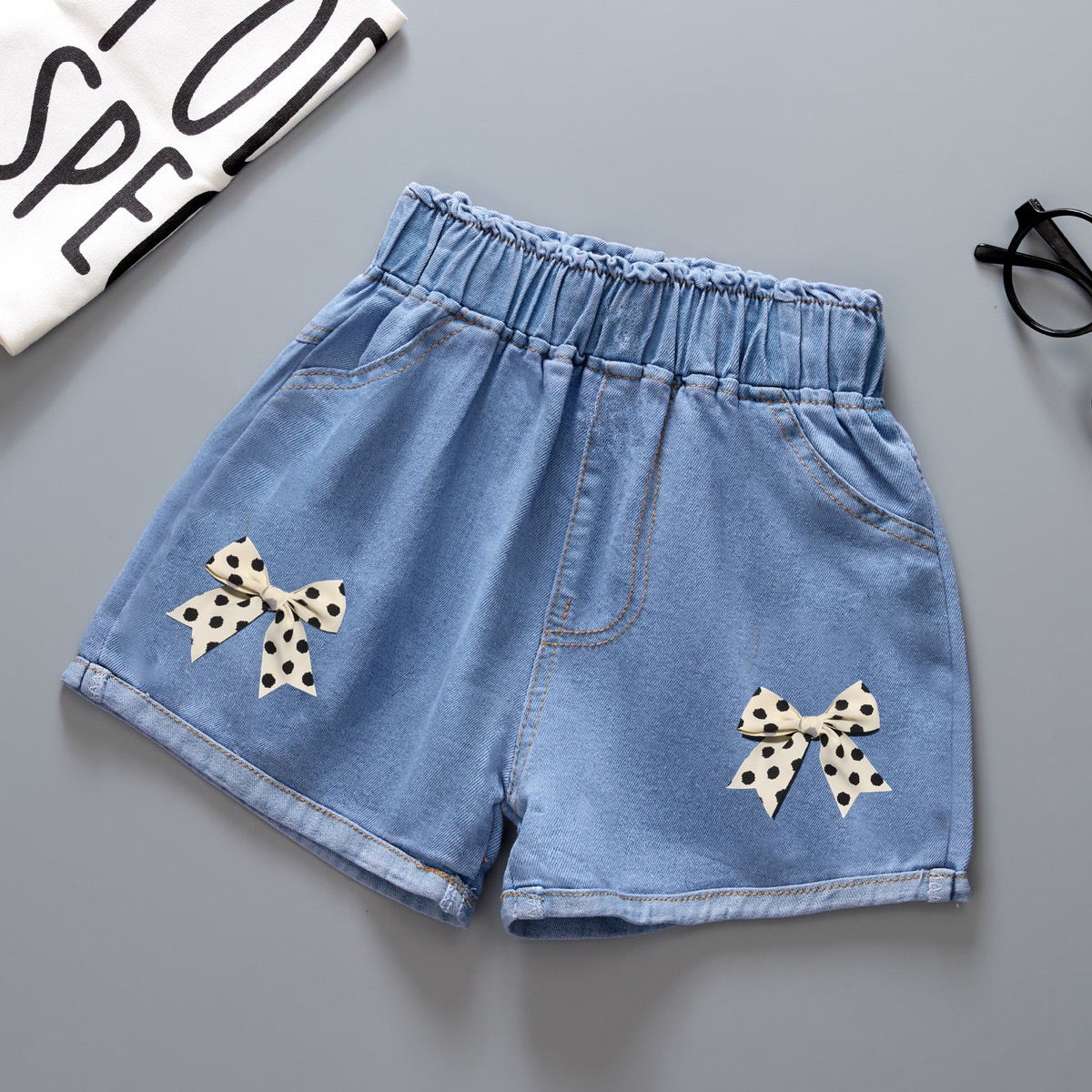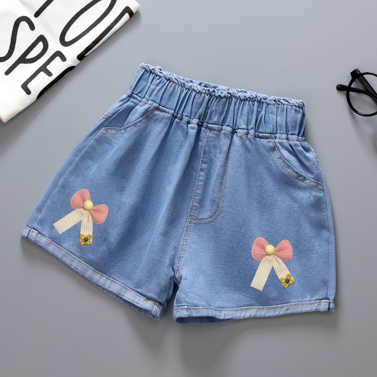 여자 데님 반바지 2025 새로운 여름 다목적 얇은 겉옷 아기 반바지 공장 현장 도매스토어 가기