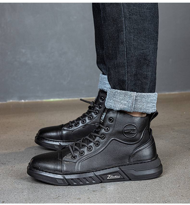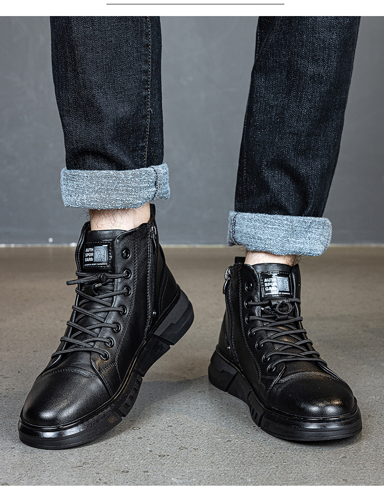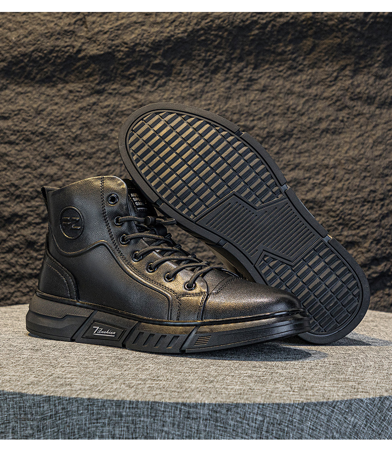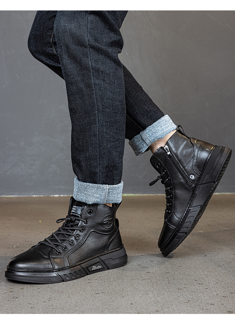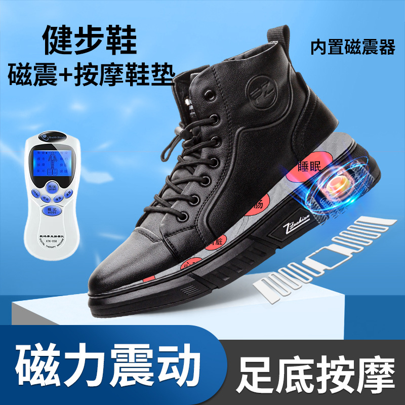 정품 가죽 기모 플랫폼 캐주얼 남성 신발 2024 겨울 새로운 자기 에너지 진동 다기능 발 펄스 마사지 신발스토어 가기