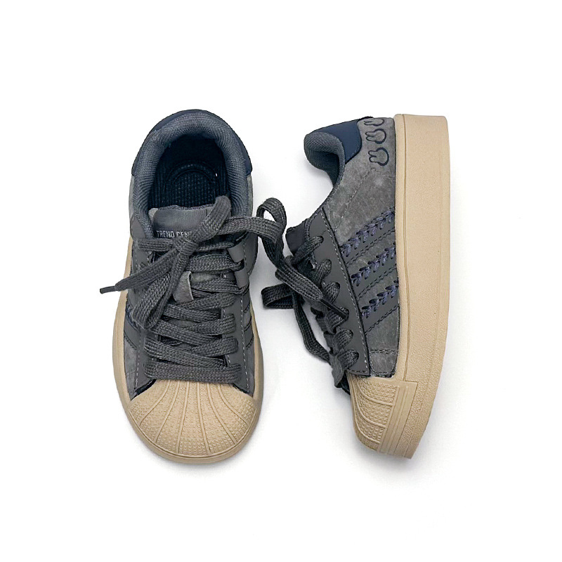 어린이 쉘 헤드 운동화 2024 가을과 겨울 새로운 소녀 가죽 캐주얼 신발 큰 어린이 소년 부드러운 바닥 조수스토어 가기