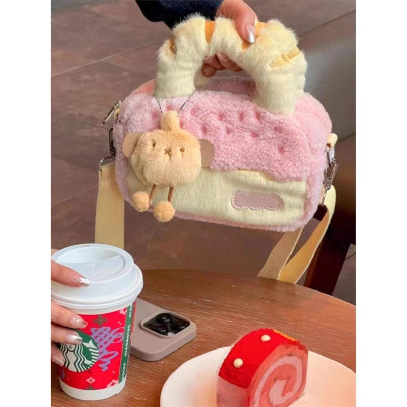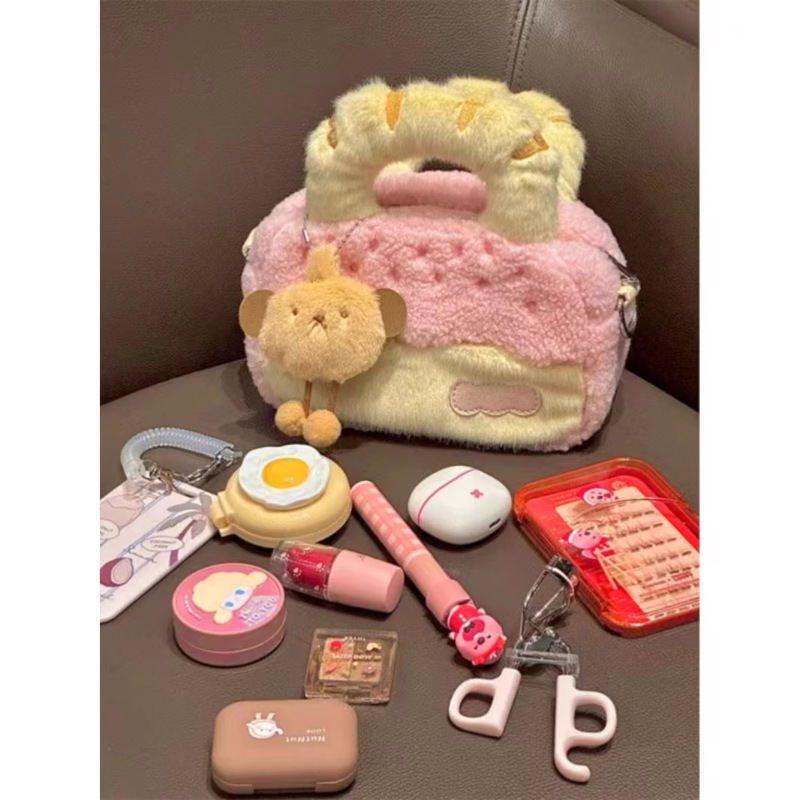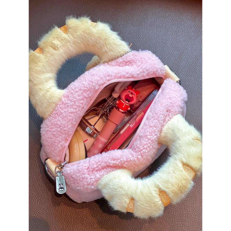 가을과 겨울 귀여운 마카롱 봉제 핸드백 2024 새로운 틈새 디자인 하이 엔드 충돌 통근 크로스 바디 백스토어 가기