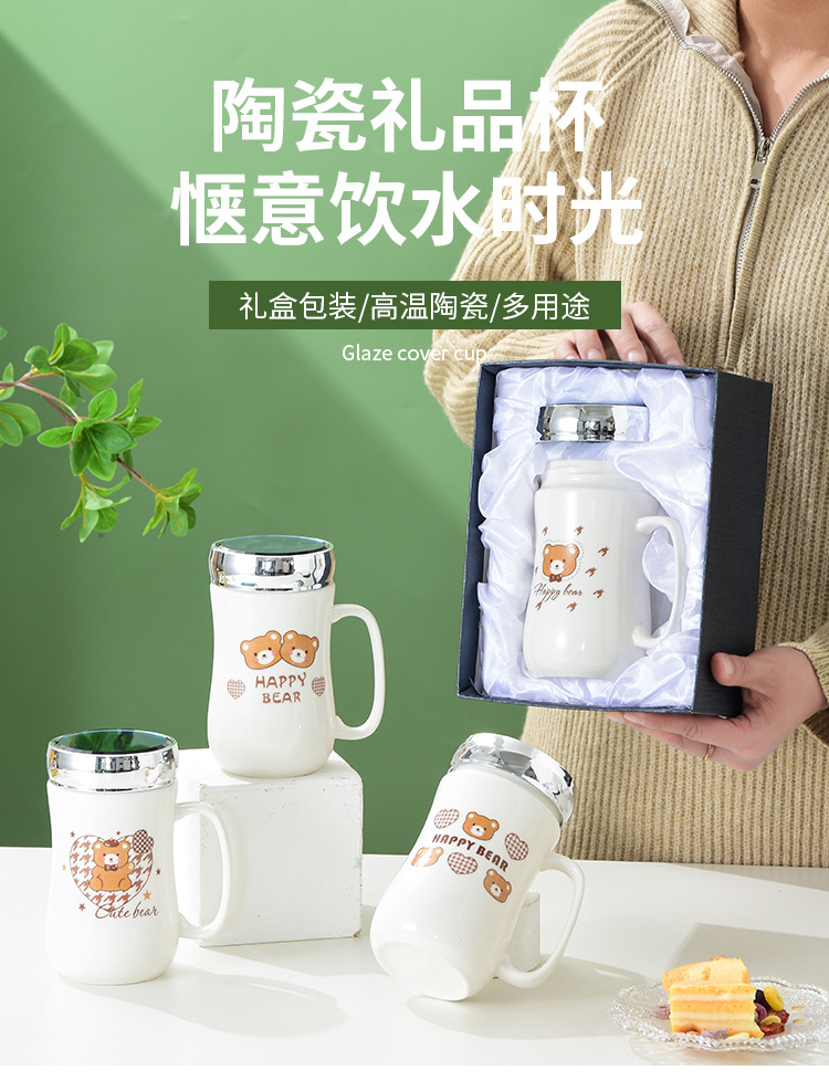 도매 선물컵 세라믹 미러컵 만화 세라믹컵 머그컵 오픈 이벤트 로고 인쇄 휴일 선물 상자스토어 가기
