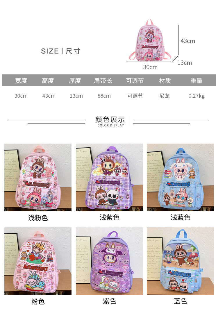 새로운 대용량 어린이 가방 Labubu 귀여운 초등학교 학생 배낭 중학교 학생 배낭 버블 마트 배낭