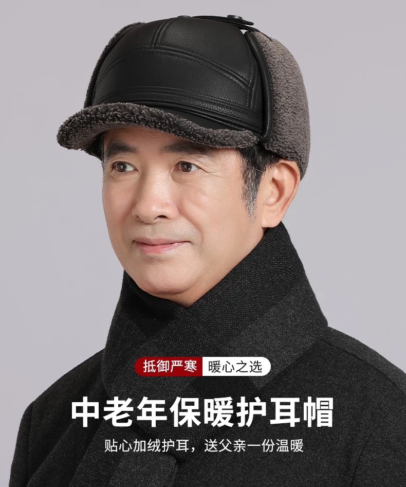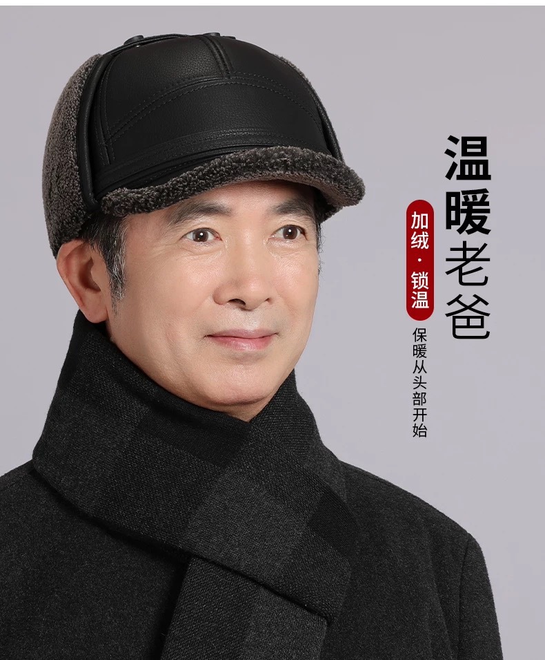 중년 겨울 모자 남자의 아버지 따뜻한 기모 가죽 모자 노인 할아버지 노인 모자 올 매치 오리 혀 모자스토어 가기