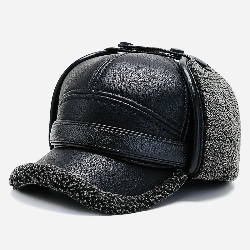 • 벨벳 귀 보호 가죽 모자 [블랙]