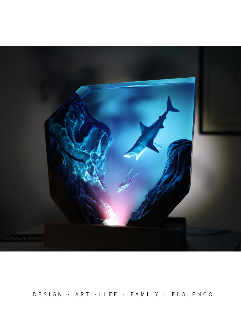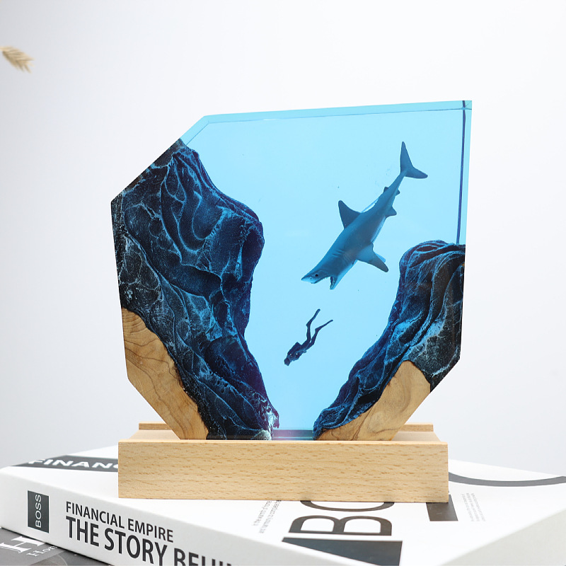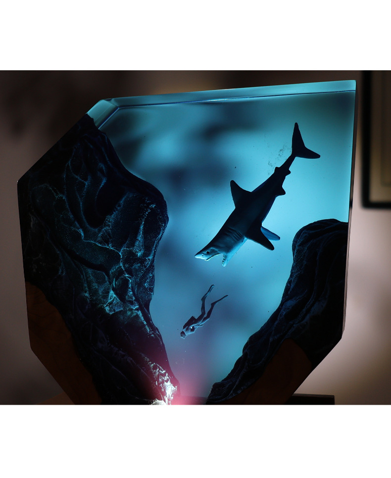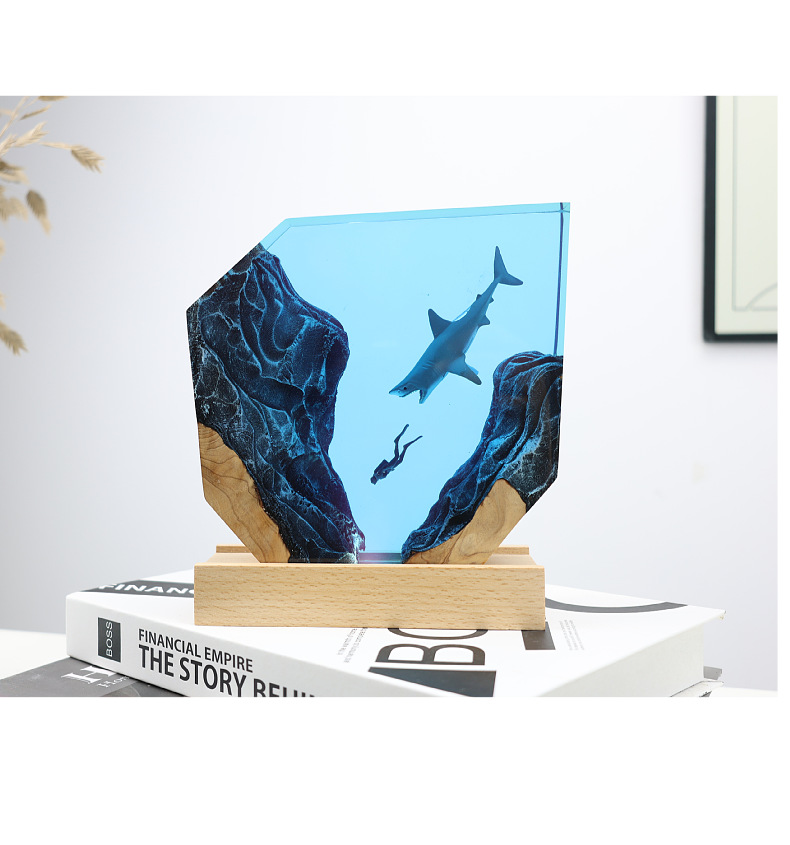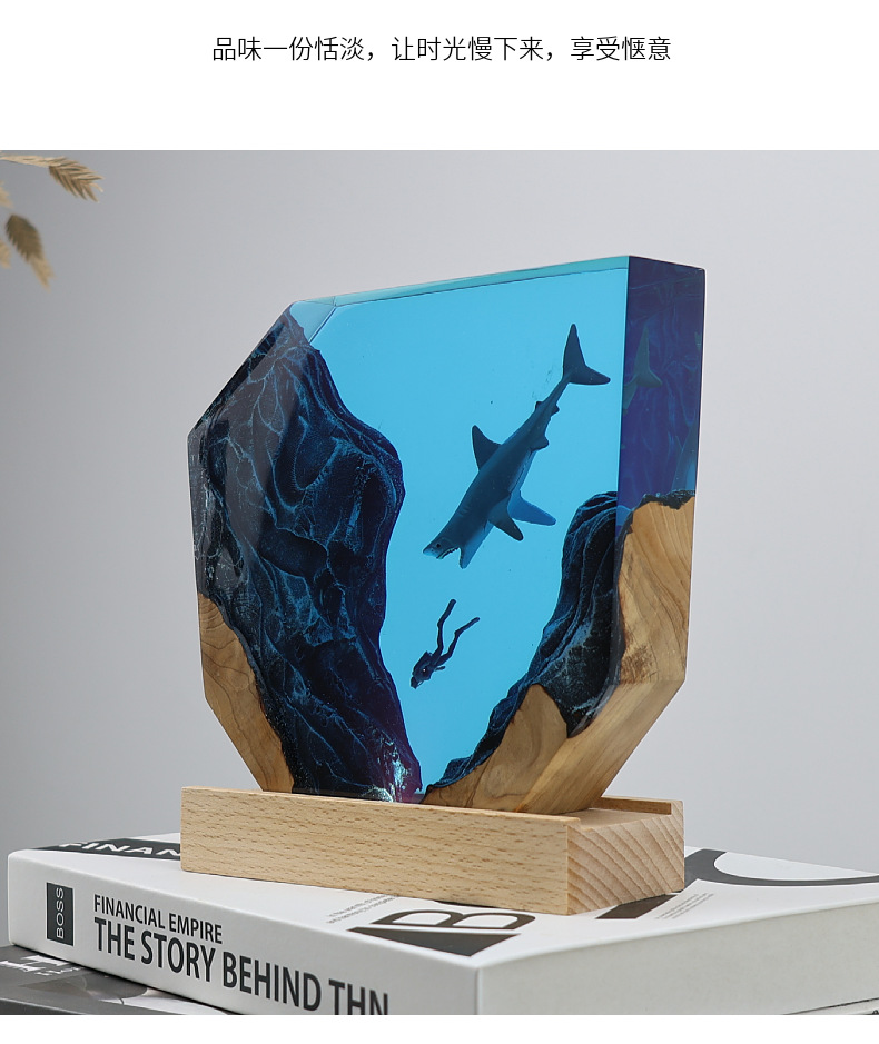 Karst 동굴 상어 다이버 데스크탑 장식품 해양 예술 공예 단단한 나무 수지 램프 생일 선물 장식품스토어 가기
