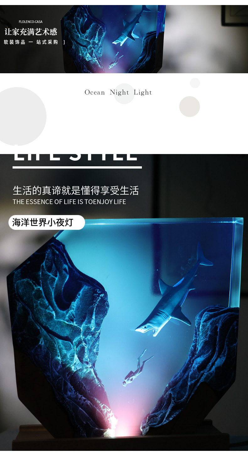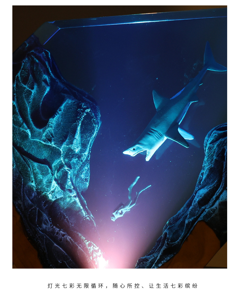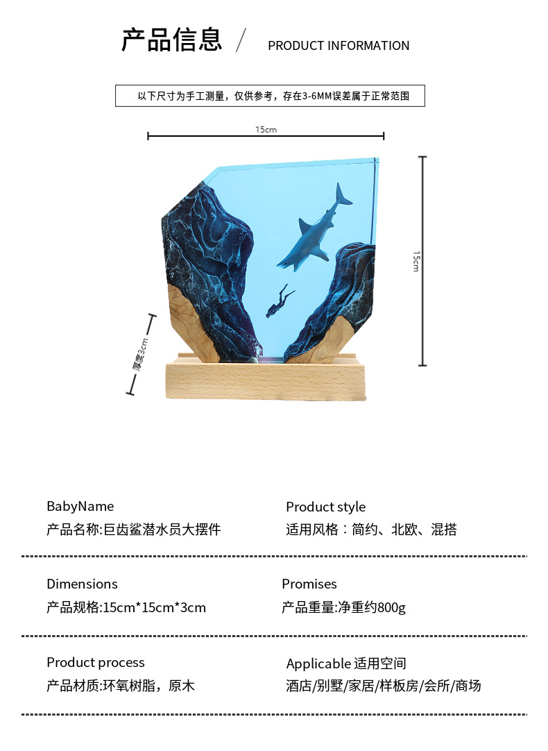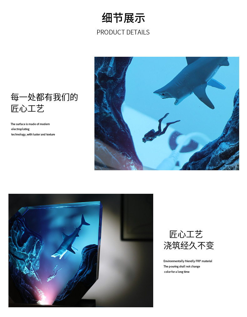 Karst 동굴 상어 다이버 데스크탑 장식품 해양 예술 공예 단단한 나무 수지 램프 생일 선물 장식품스토어 가기