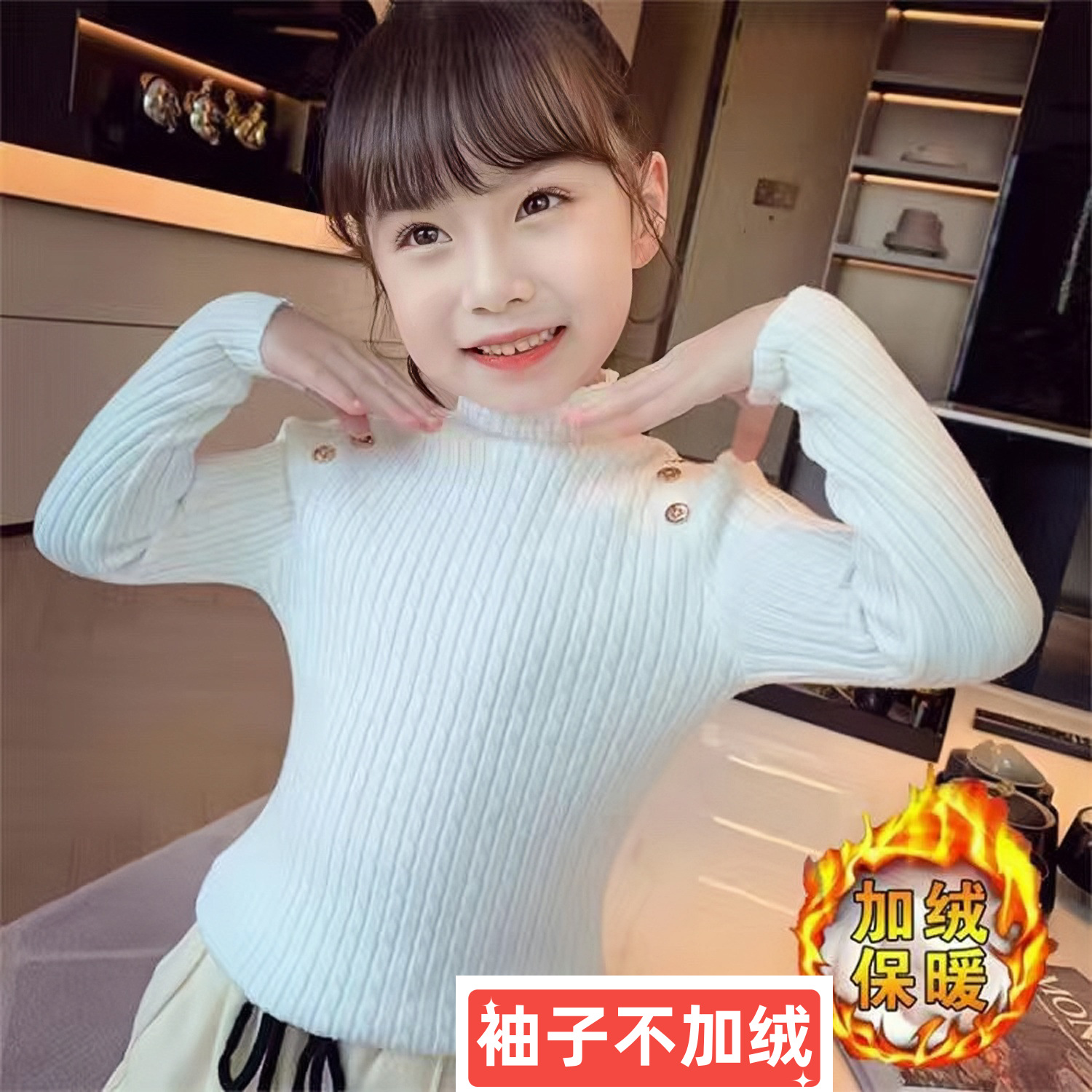 소녀들의 가을 · 겨울 폭발 버튼베이스 셔츠 어린이 한국식 올매치 베이스 스웨터 안티 필링 내부 셔츠