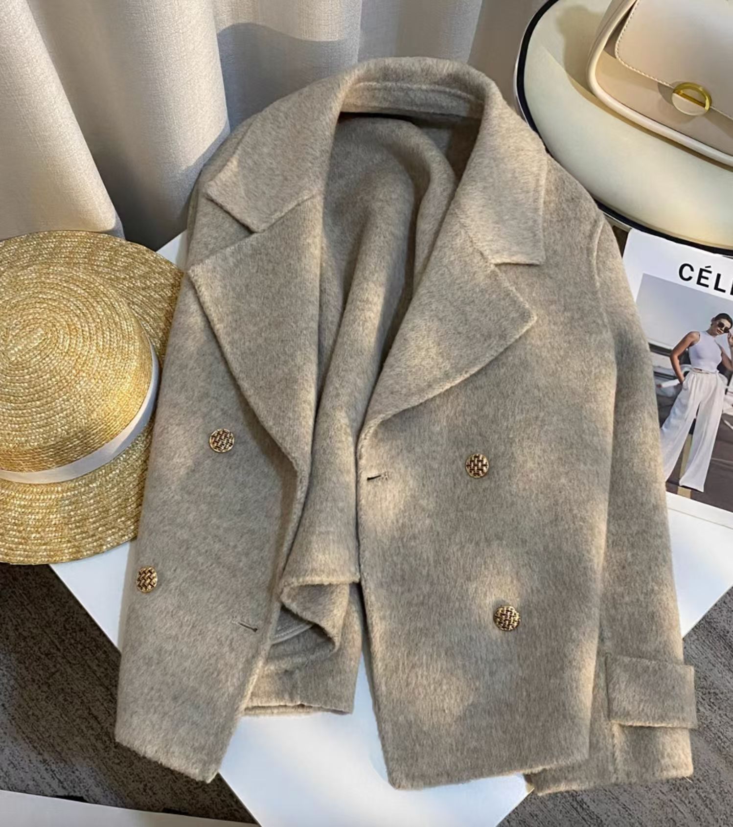 2025 봄 신상 우아하고 패셔너블한 고급스러운 양모 코트 여성용 양면 울 숏 블레이저