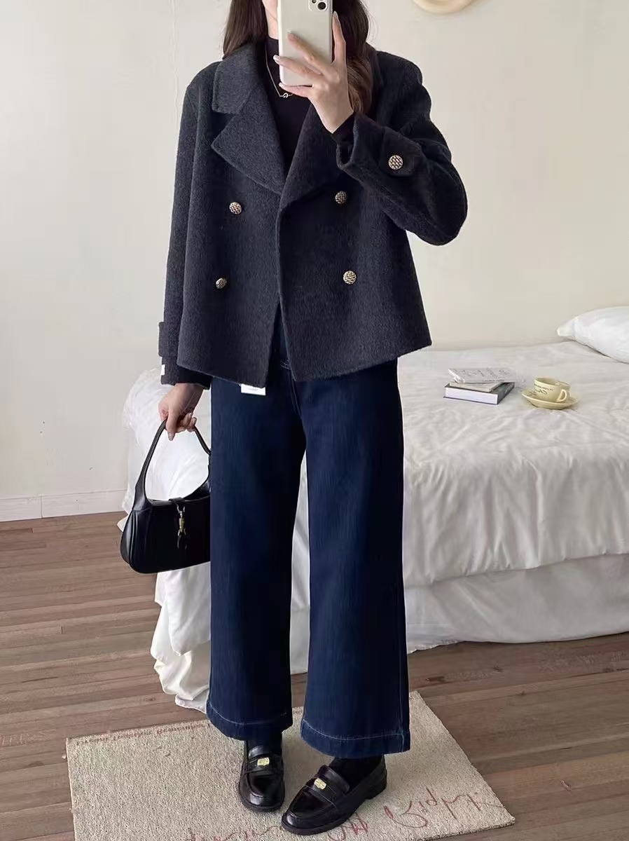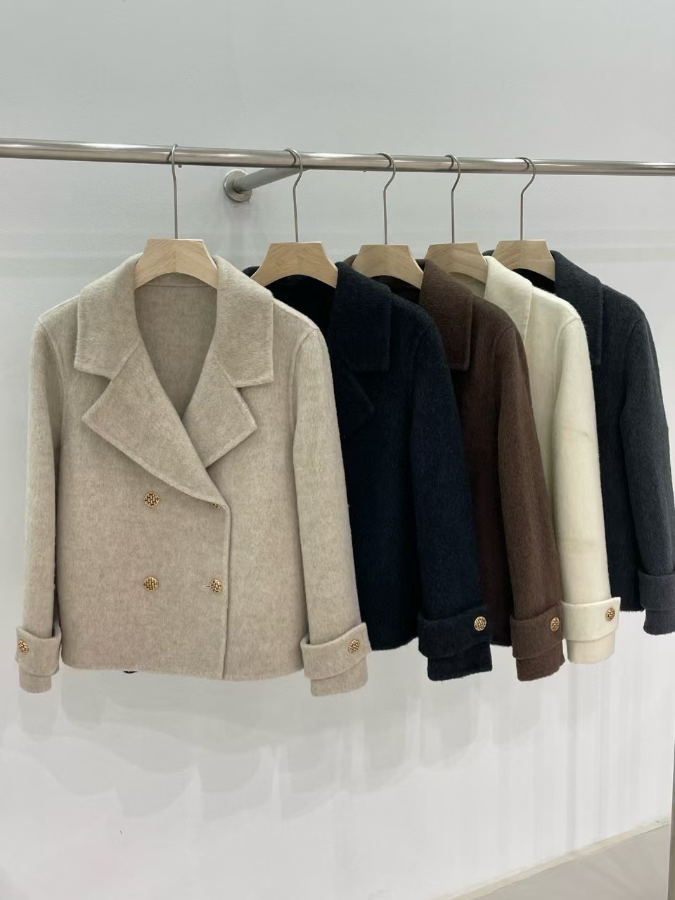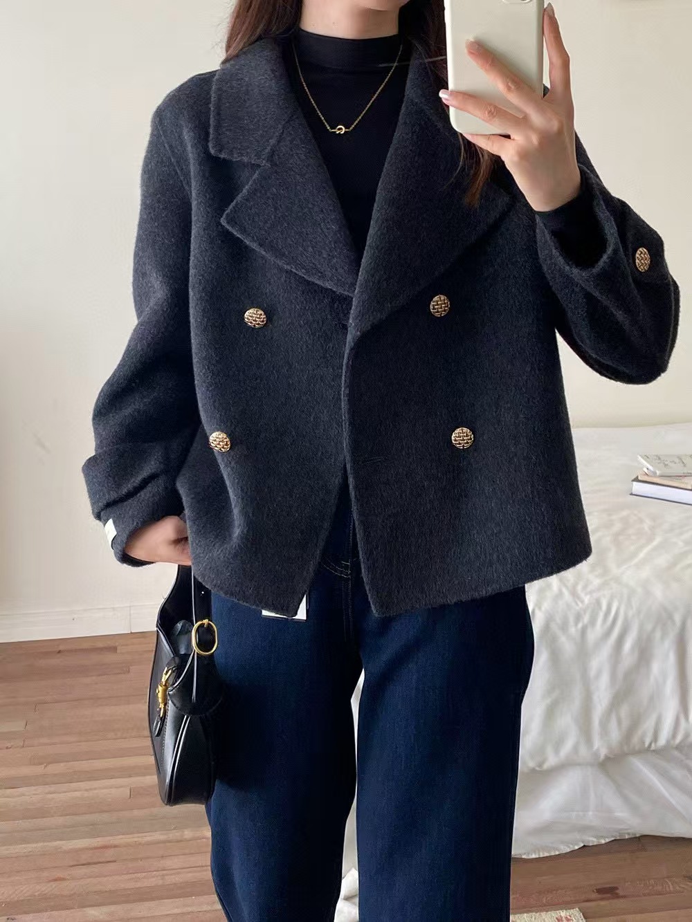 2025 봄 신상 우아하고 패셔너블한 고급스러운 양모 코트 여성용 양면 울 숏 블레이저스토어 가기